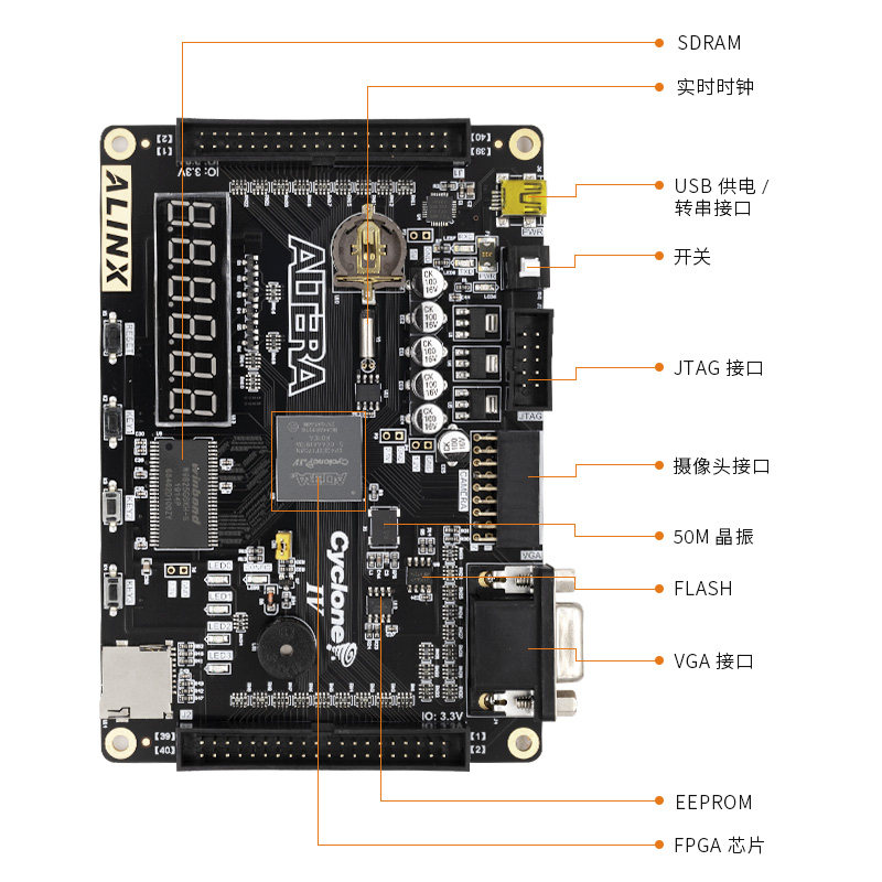 FPGA开发板ALTERA CYCLONE IV EP4CE6配视频教程学习板黑金ALINX