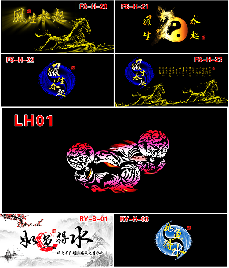 定做龙鱼缸背景纸图画书法字画龙鱼水族箱装饰壁纸画高清风生水起