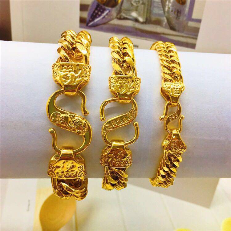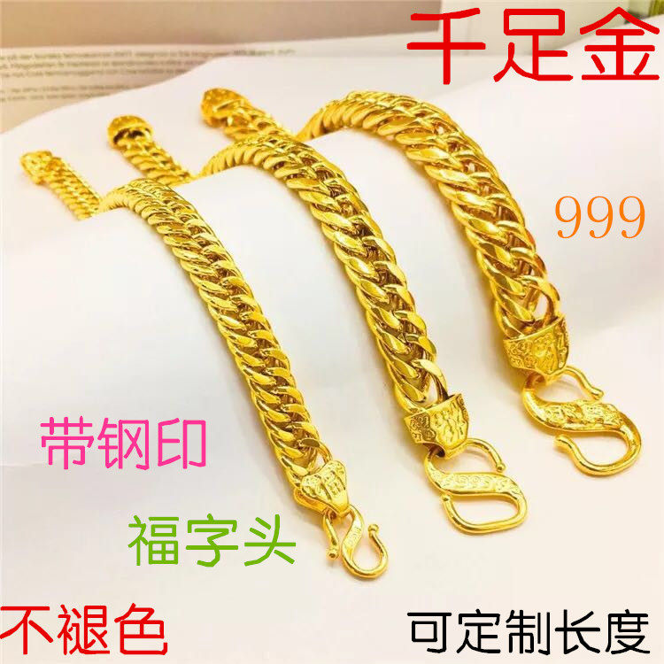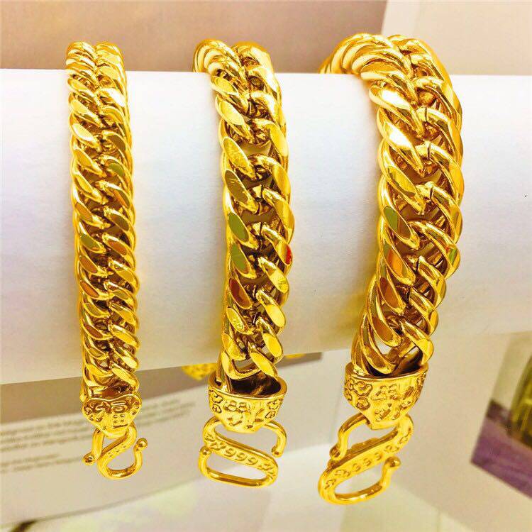 18k黄金手链男镀24K金手链男士马鞭老板粗款胖土豪链久不掉色包邮
