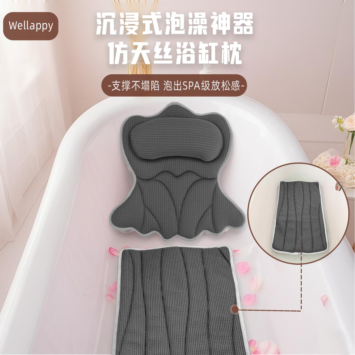 浴缸靠枕防滑垫 亲肤柔软仿天丝护颈泡澡枕 环保浴缸靠垫 SPA头枕
