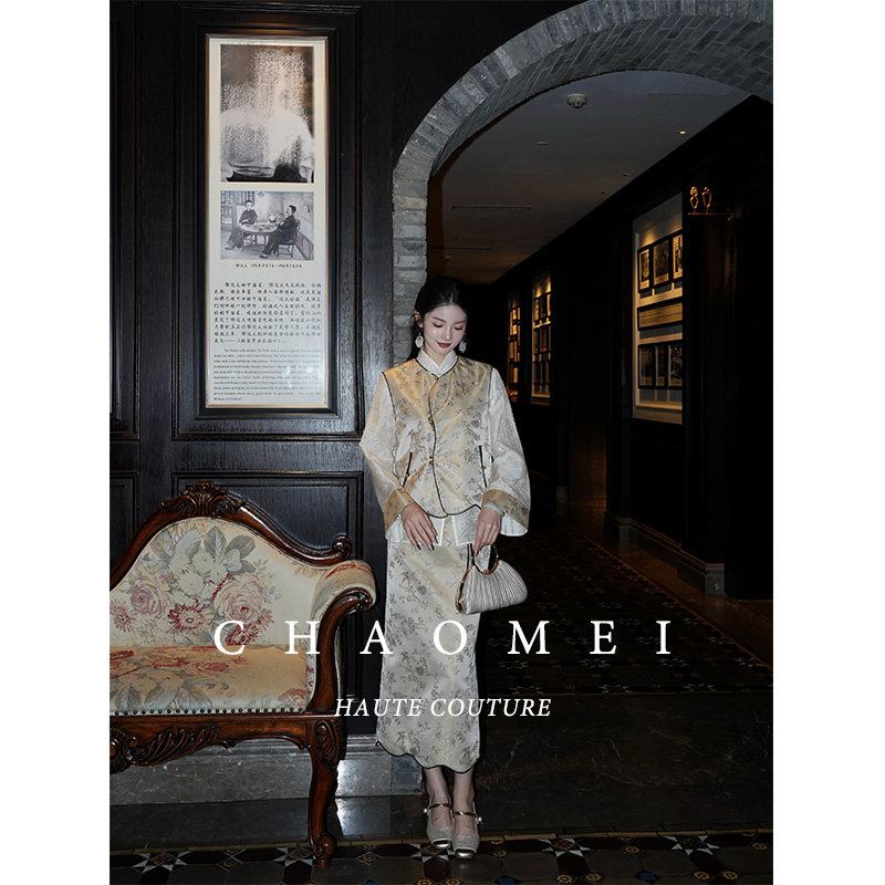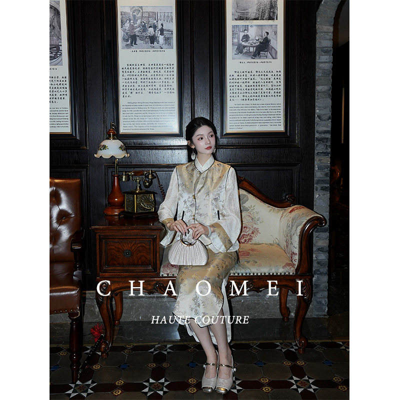 年终特惠【忆长安】新中式提花马甲+天丝衬衫+半身裙三件套装