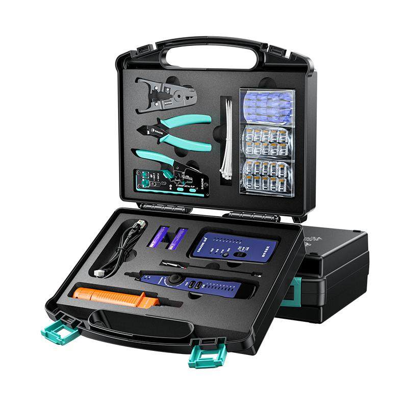 山泽家用工具箱套装网线钳高端全新多功能水晶头工具包五金打线刀