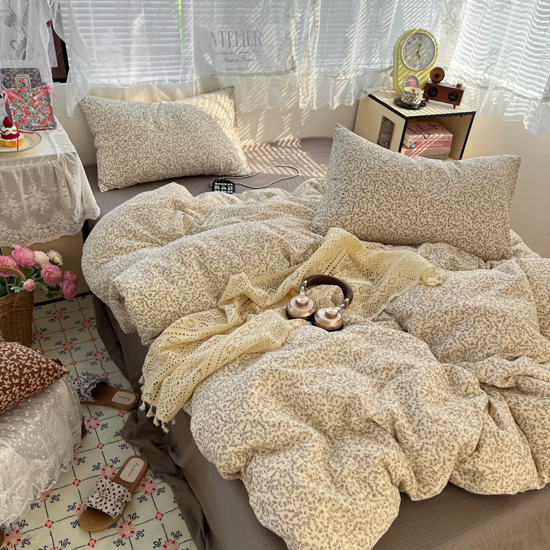 加厚床品四件套双层纱被套床单被罩新款床上用品学生宿舍三件套件