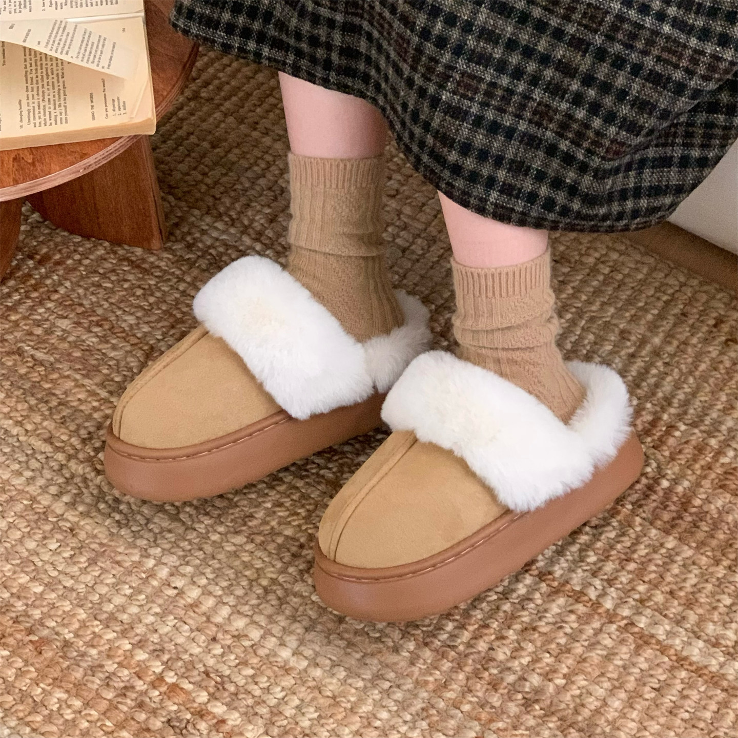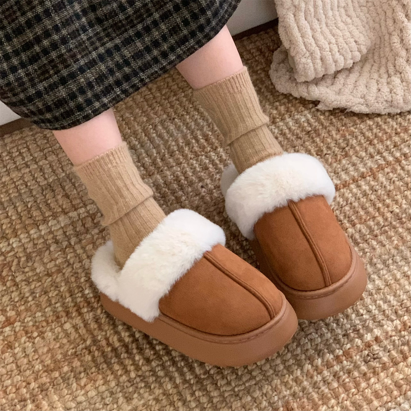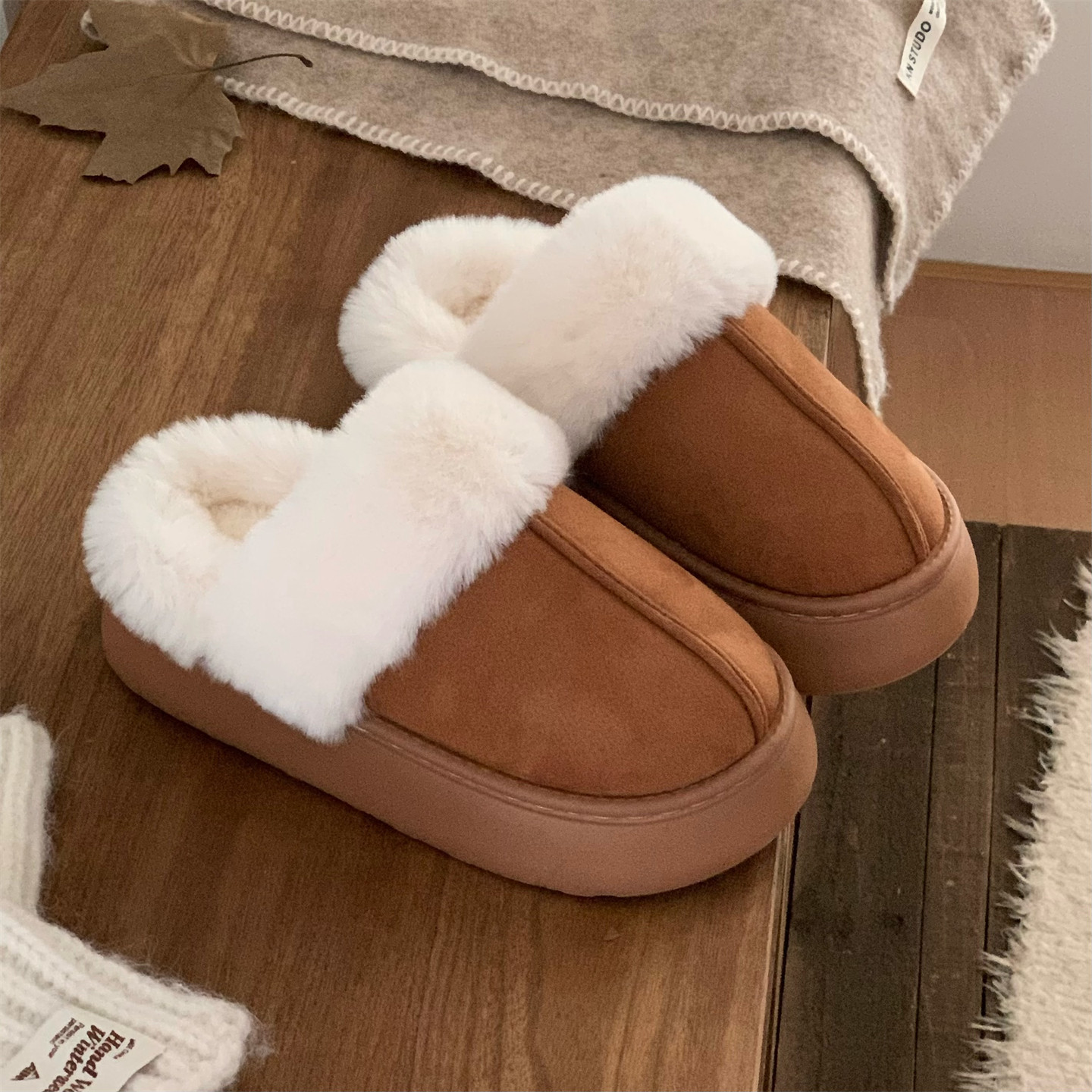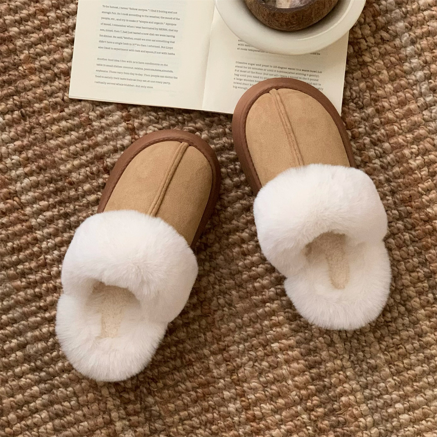 细细条 雪地靴拖鞋女时尚厚底居家防滑可外穿冬季毛绒月子棉拖鞋