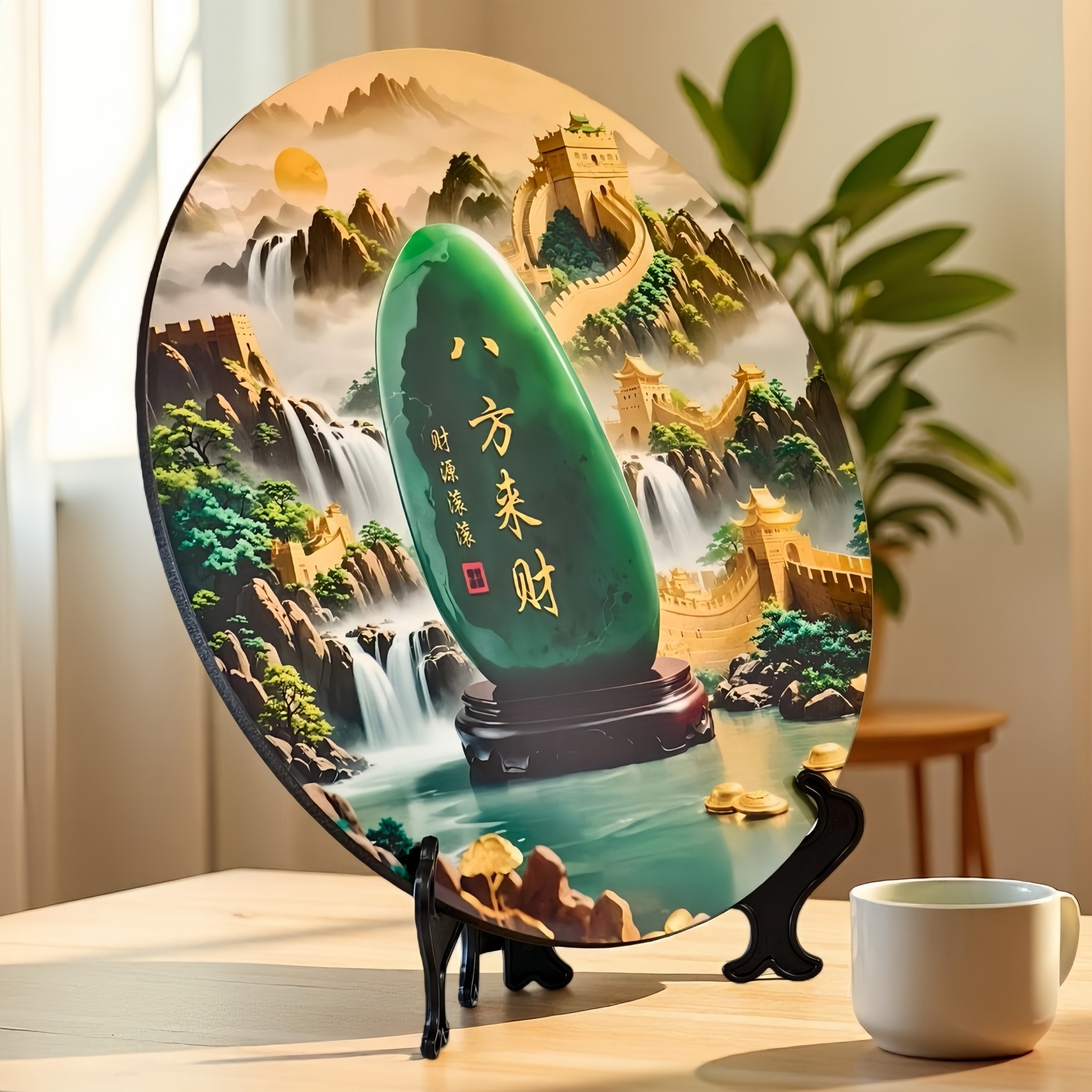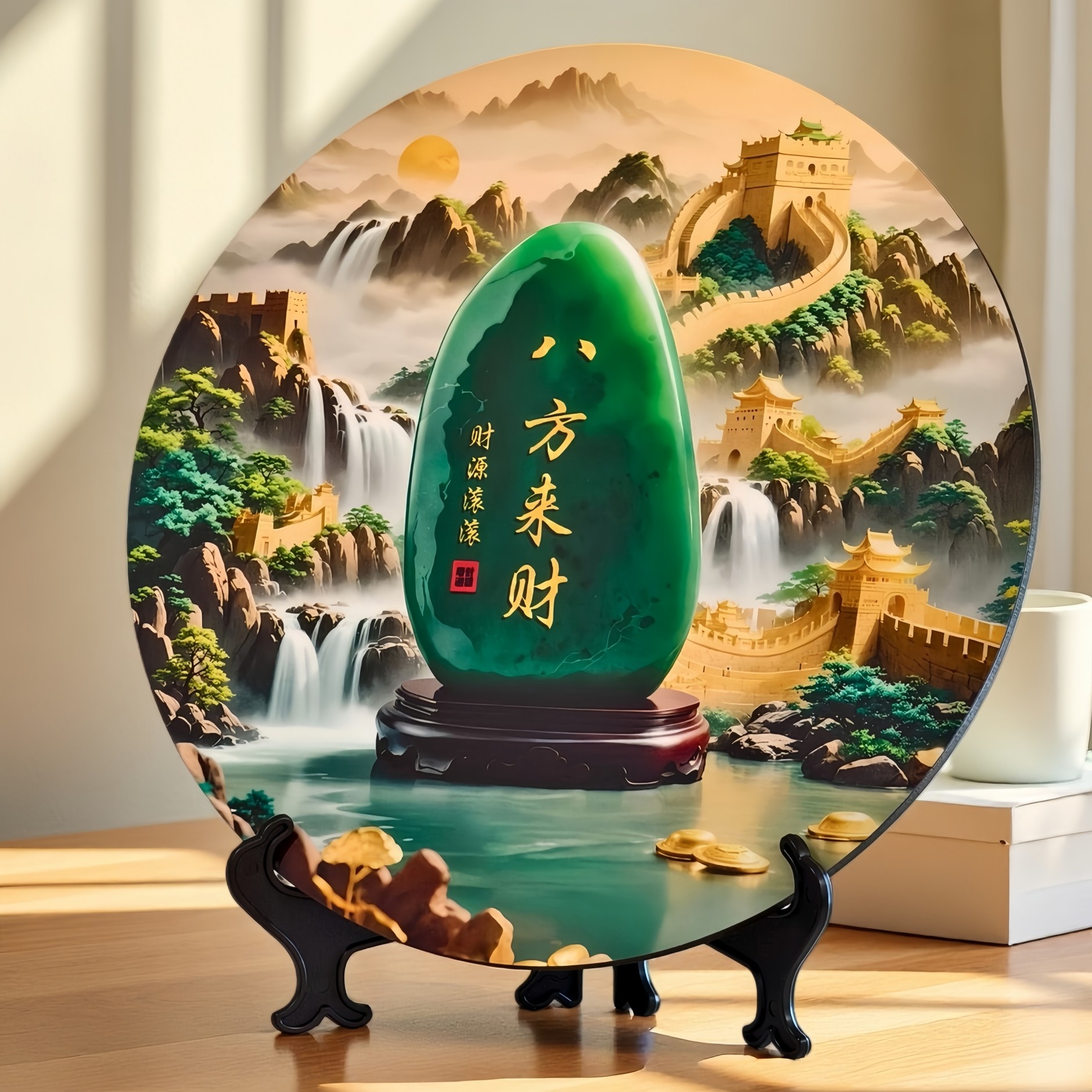 入户玄关装饰摆件八方来财玉石装饰画高级感现代简约招财乔迁礼物