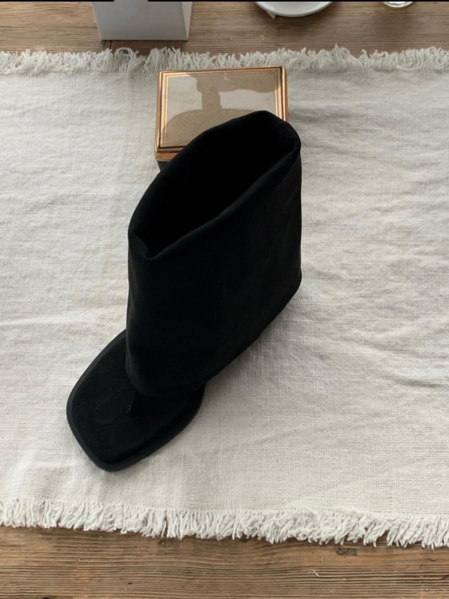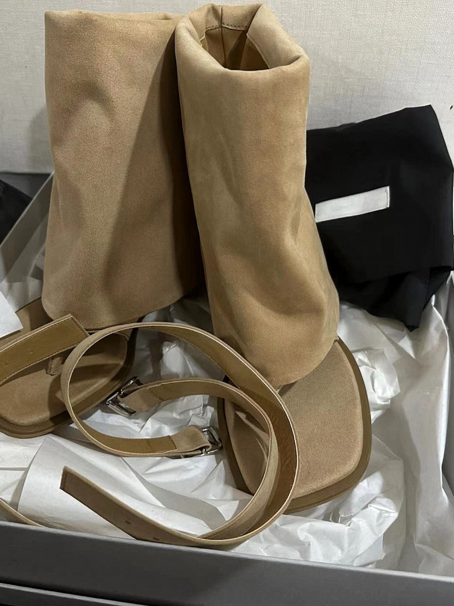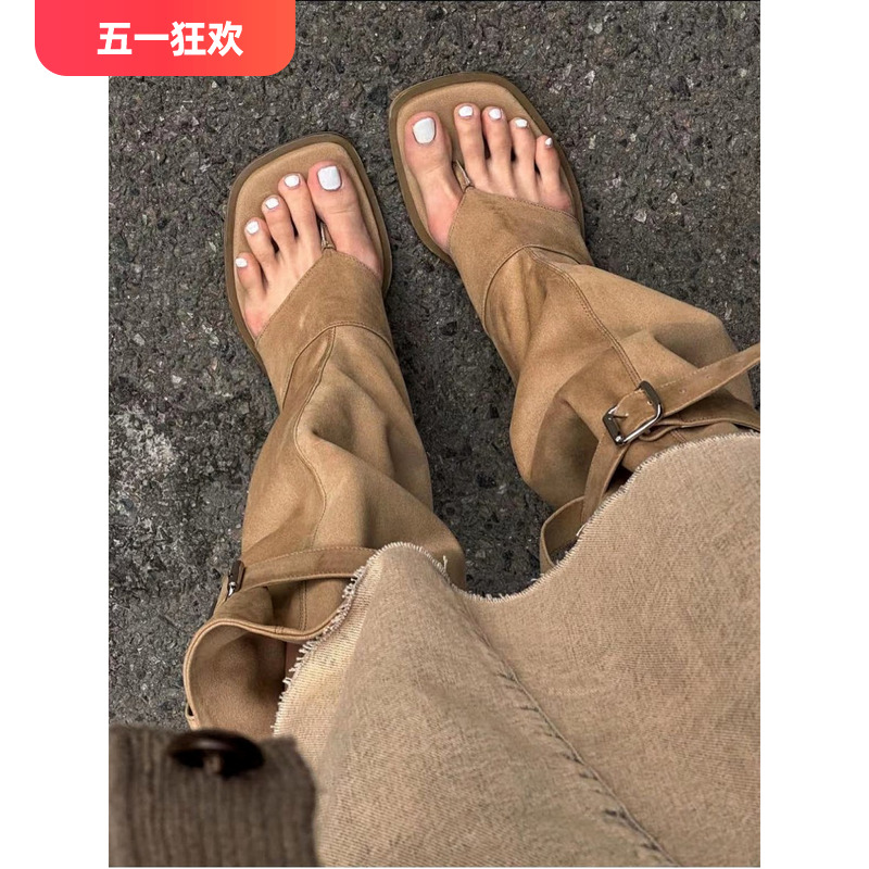 两穿人字夹趾绒面革褶皱凉靴2024新西部牛仔靴辣妹裤管长靴凉鞋女