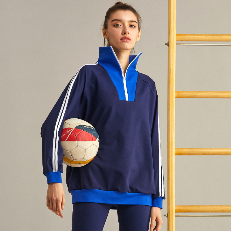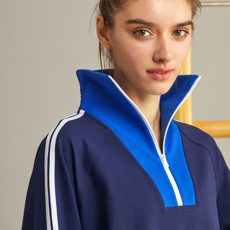 gymna春季复古立领半拉链宽松休闲服装运动卫衣吸汗透气套头衫女