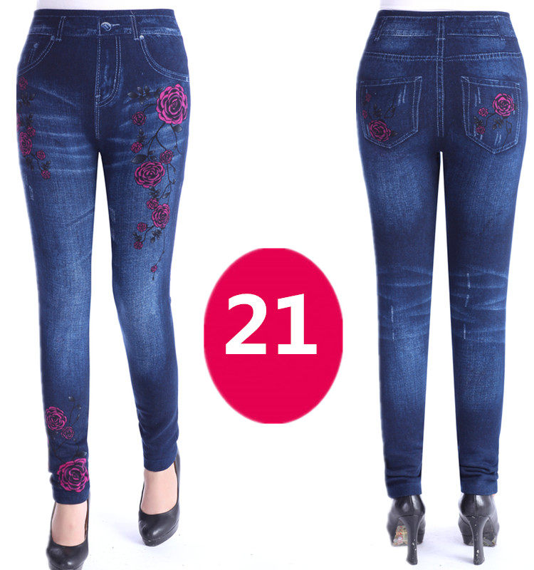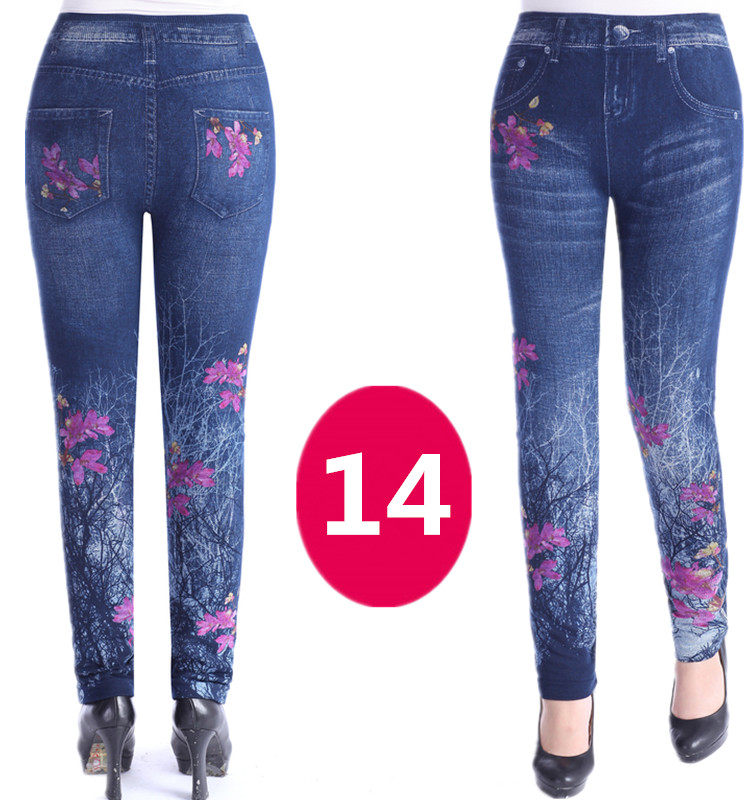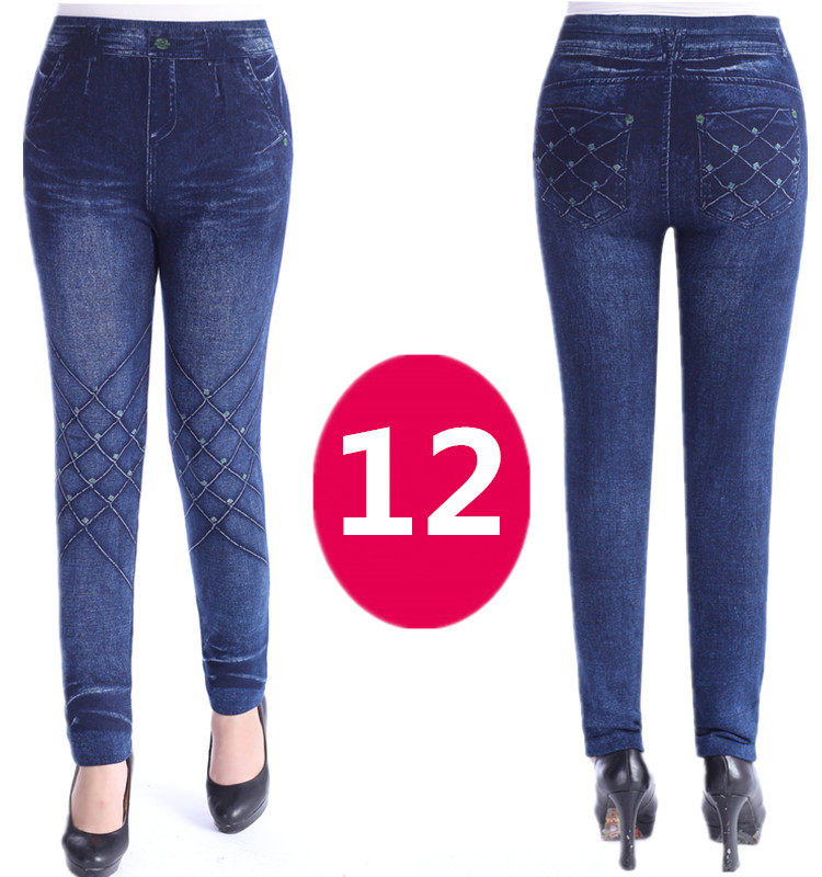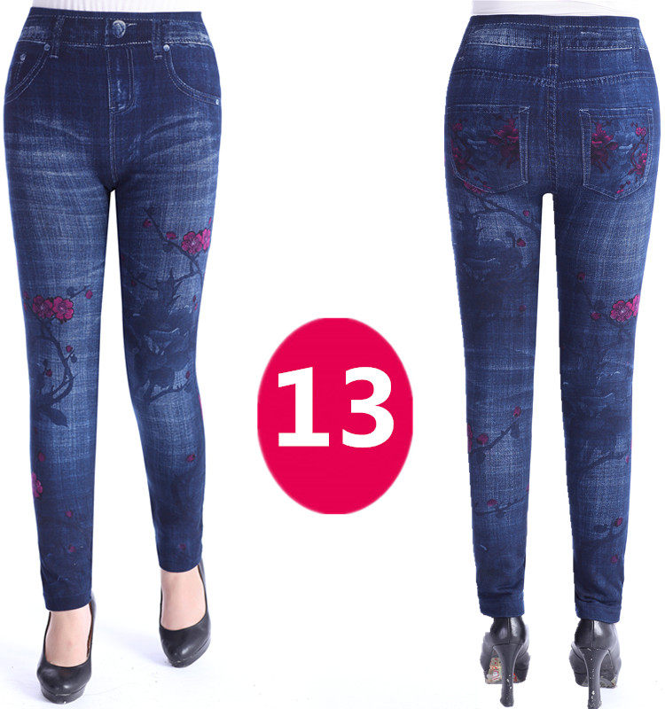 神奇女款中老年女装妈妈打底裤秋冬加大码女士高腰印花仿牛仔底裤