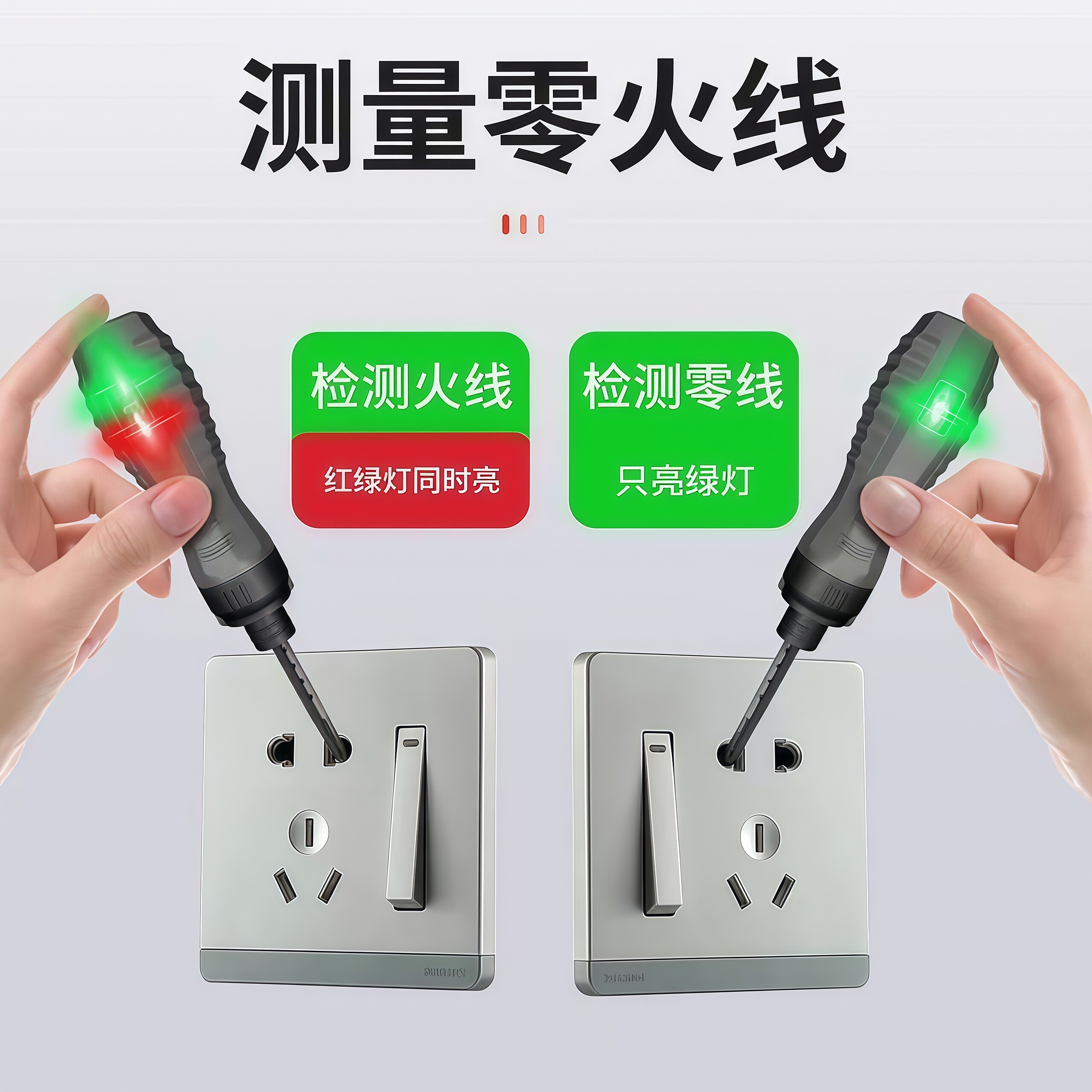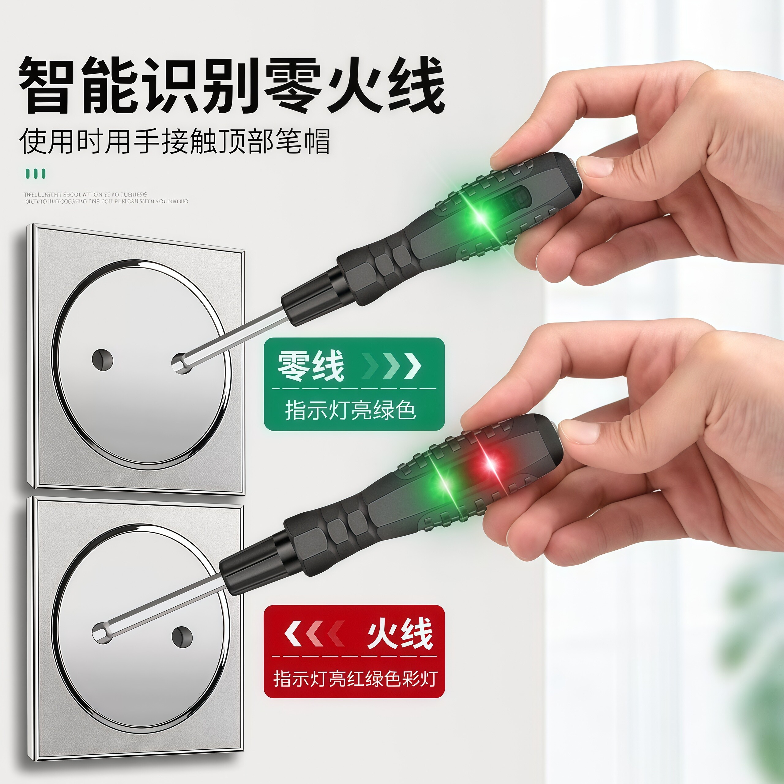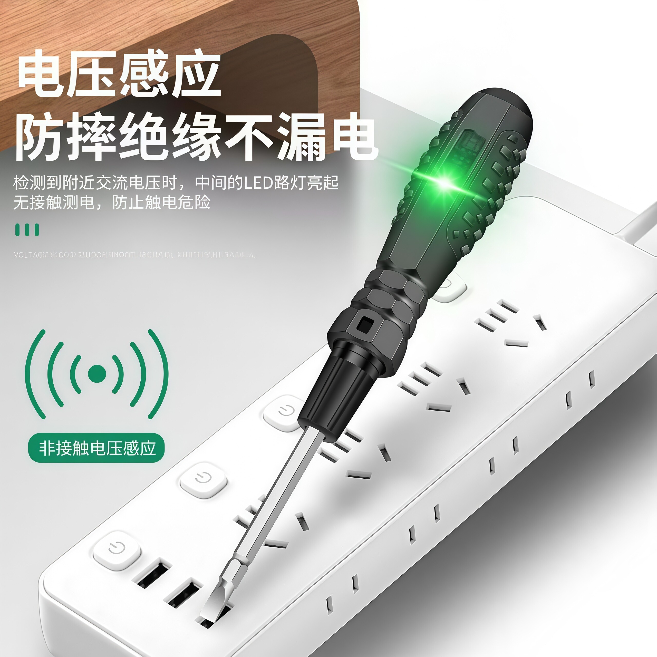 启明多功能测试电笔十字一字高亮断点检测包胶电工检验带磁螺丝刀