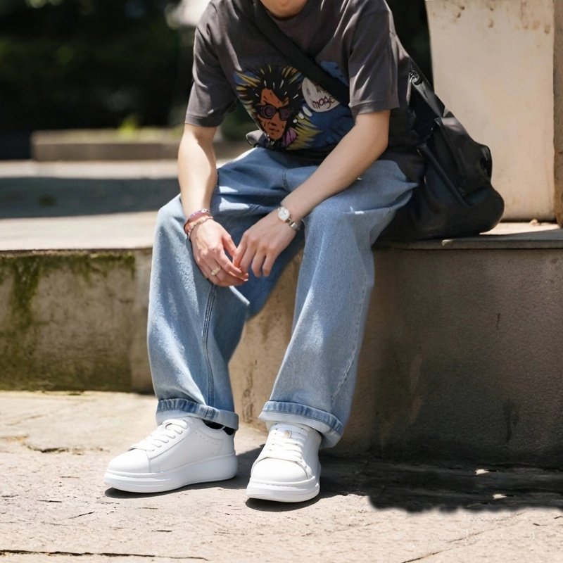 【张若昀同款】头层牛皮小白鞋男厚底内增高休闲运动板鞋德训鞋子