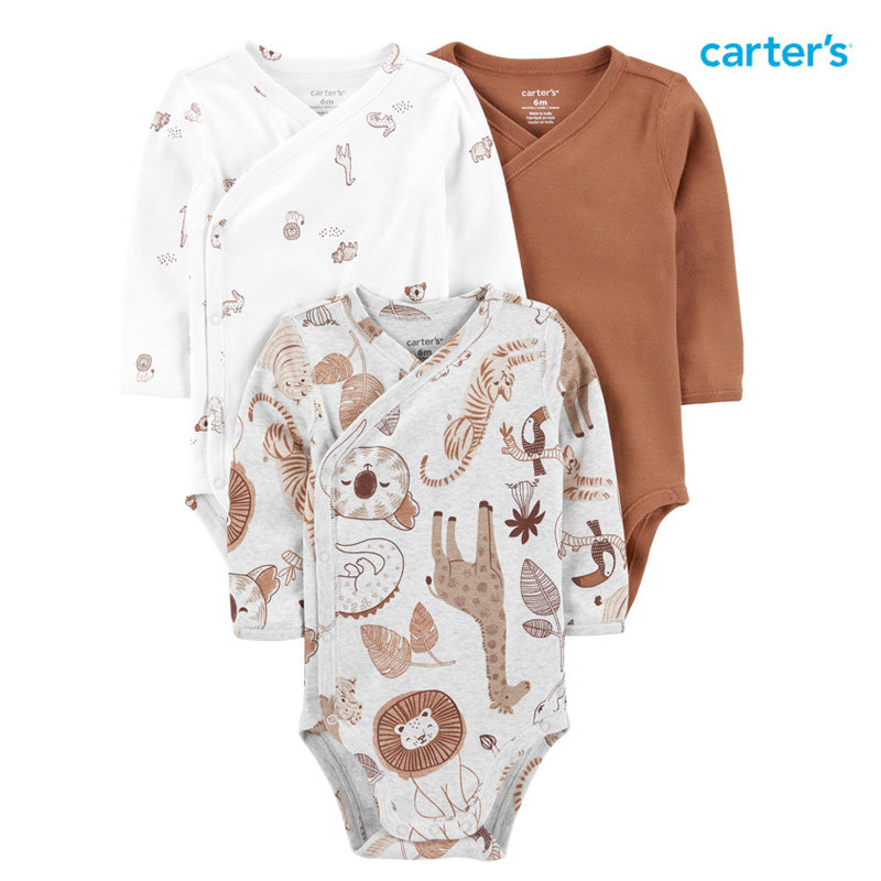 美国Carter's男宝宝春秋款纯棉和尚服新生儿长袖包屁爬服婴儿哈衣