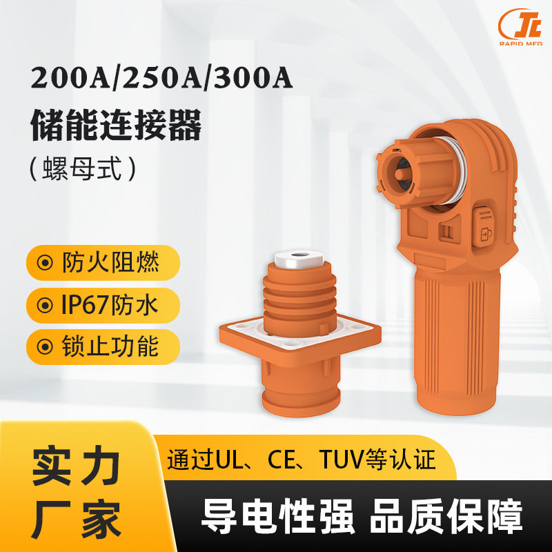 200A/250A/300A高压防水储能连接器快插式接线端子单芯弯头连接器
