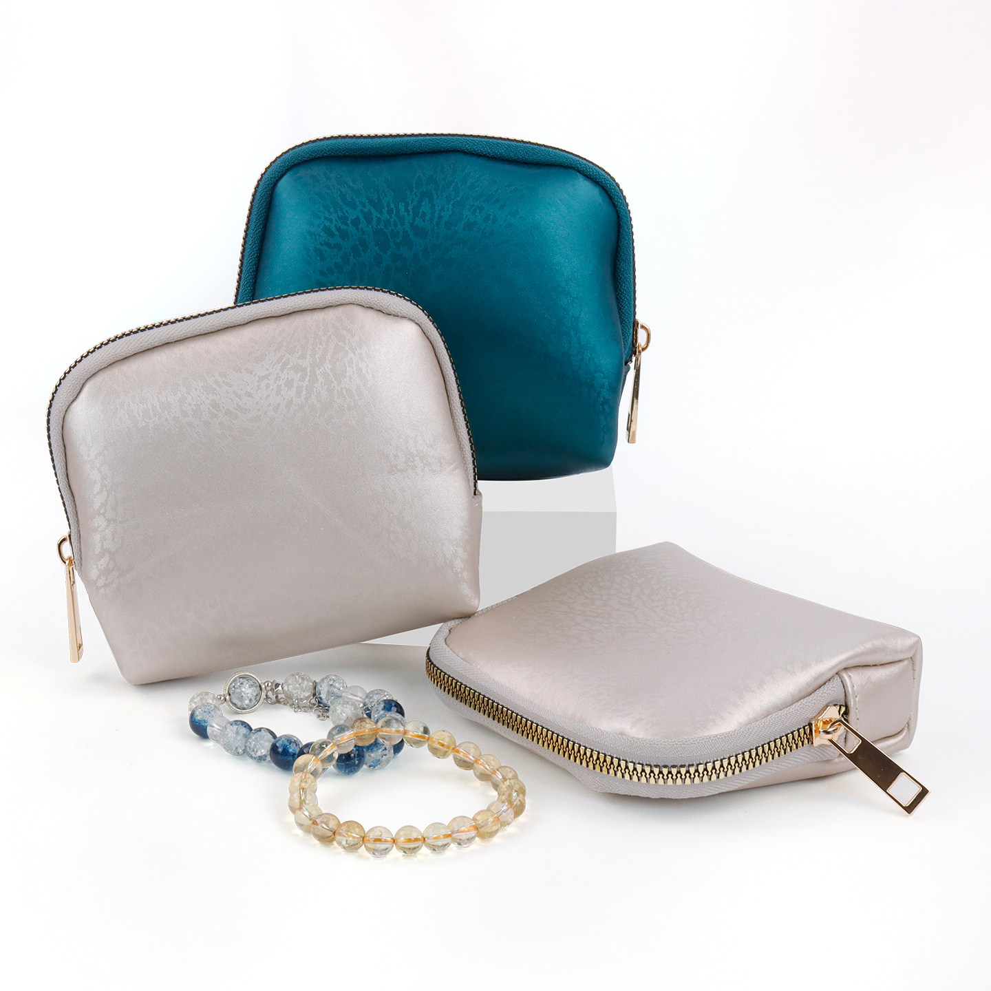 新款精致时尚PU皮多层首饰拉链袋旅行便携黄金手串饰品收纳包