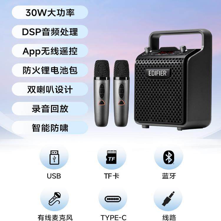漫步者PP205S户外音响无线蓝牙音箱手提便携双话筒K歌直播扩音器