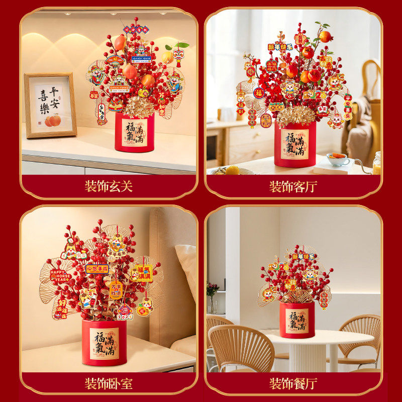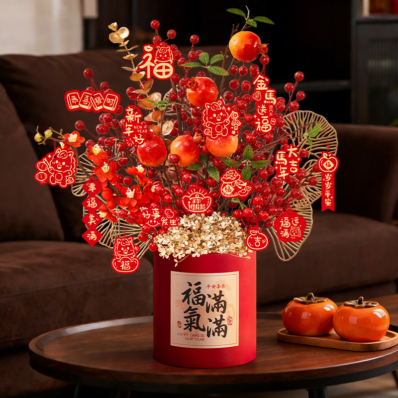 2026马年桌面摆件装饰品过年客厅氛围布置新年发财果福桶春节年味
