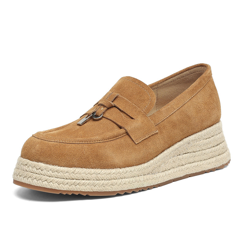 达芙妮老钱风乐福鞋女款2026新款春季单鞋增高厚底女鞋棕色渔夫鞋