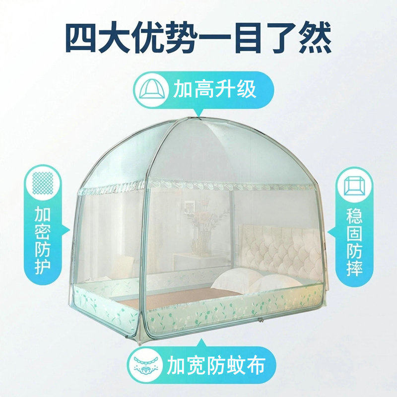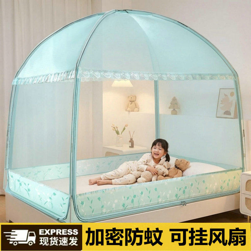 蒙古包蚊帐防摔防蚊全底家用2026新款儿童宝宝防坠床加密单人双人