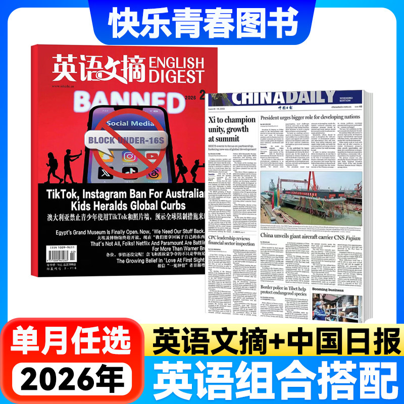 2026年1-2月新 英语文摘杂志+中国日报周三版China Daily Zweekly组合中英文双语学习阅读四六级大学考研雅思托福备考英语英文报纸