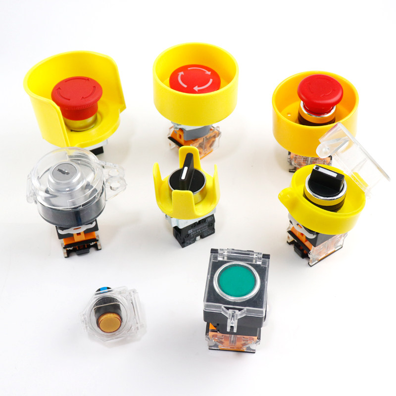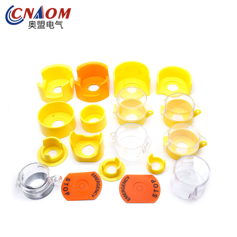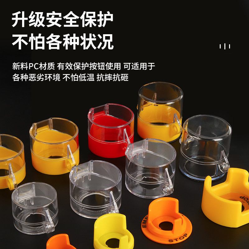 按钮开关保护盖圆形STOP急停按钮保护罩透明防尘帽警示圈按钮配件