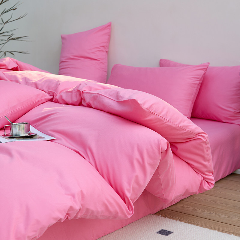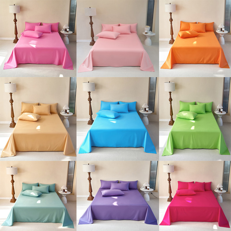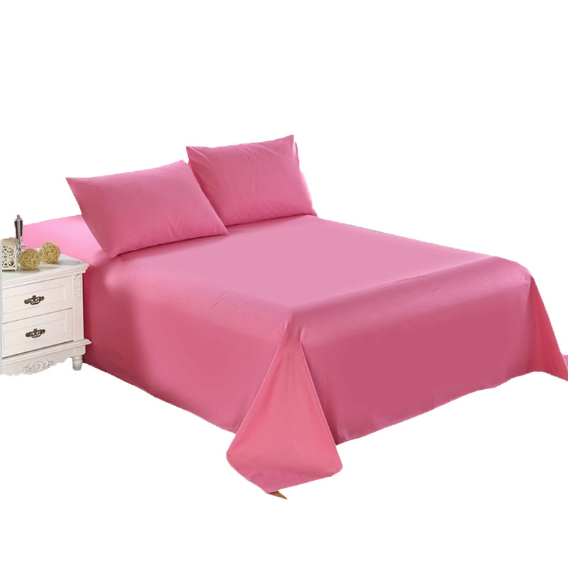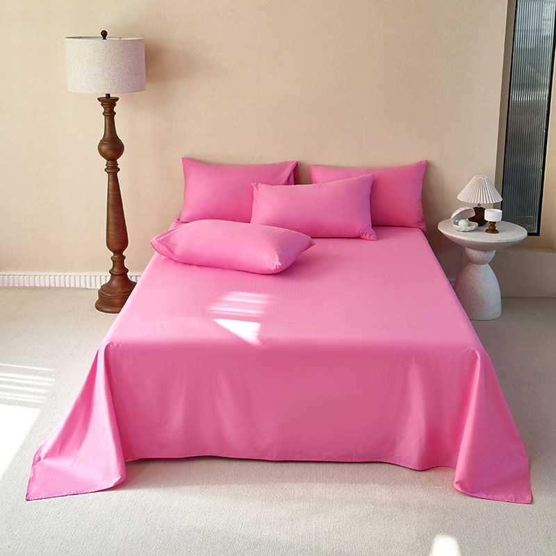 床上全棉纯色床单三件套纯棉单件被单+枕套双人1.8m床2.0m床红色