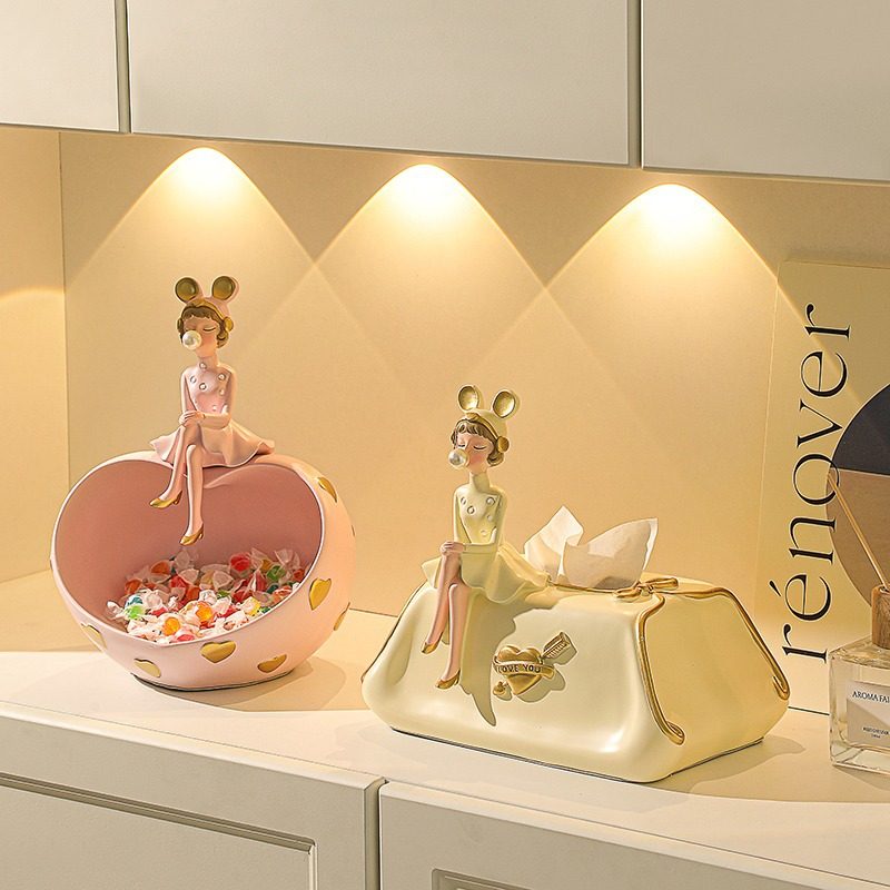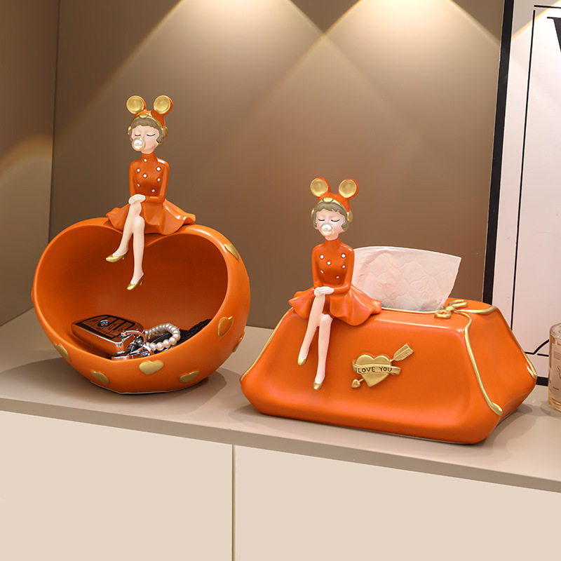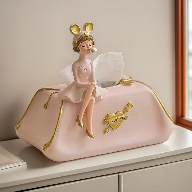 创意奶油风女孩纸巾盒抽纸盒摆件轻奢高档家用餐桌客厅桌面装饰品