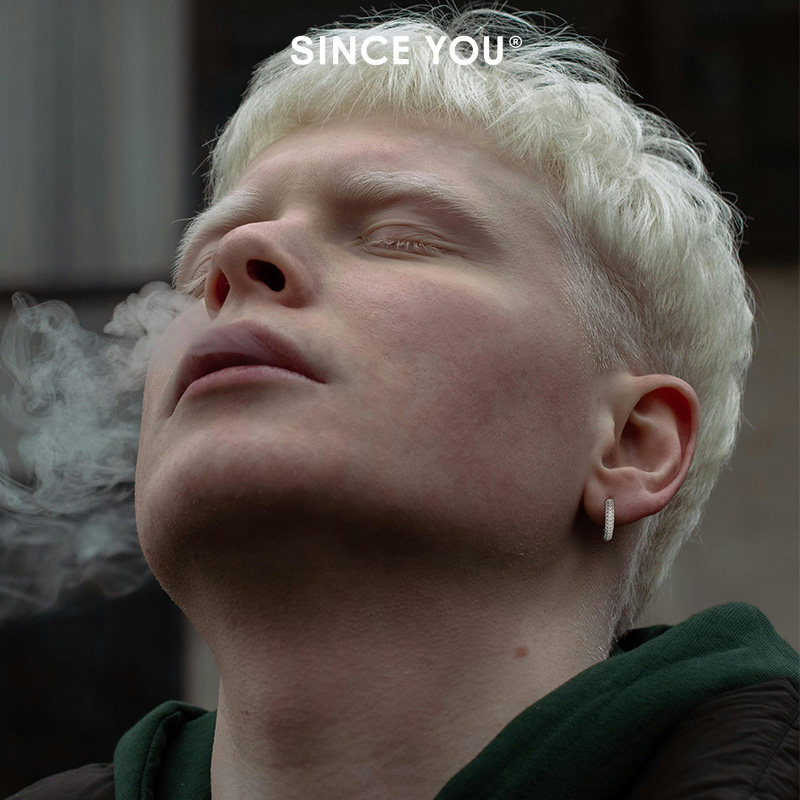 Since You闪耀圆环耳钉男纯银D色莫桑钻耳饰独特高级感满钻耳环女