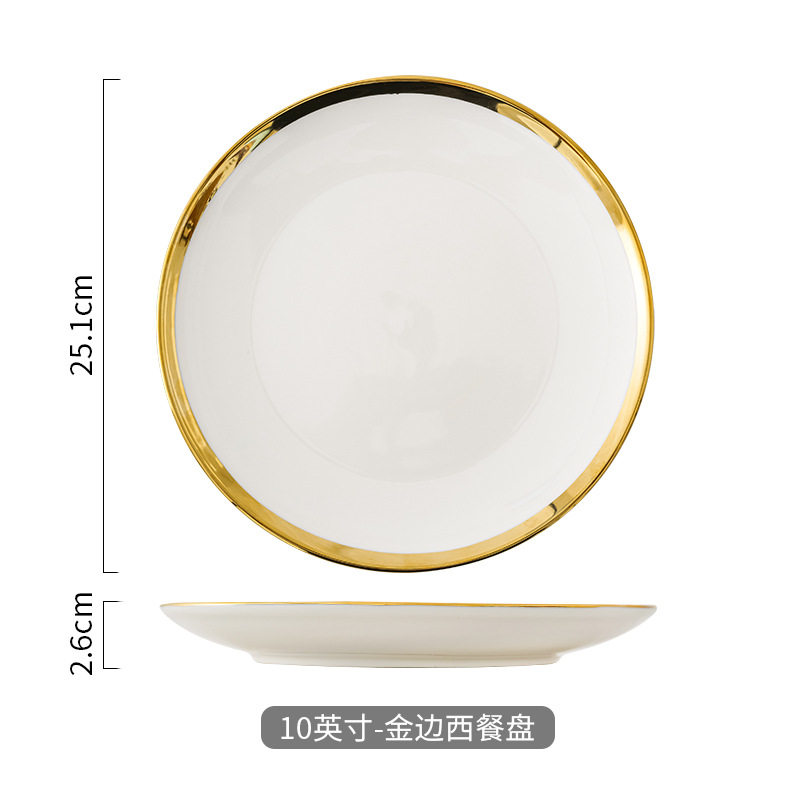 10 "White Gold Border Round Ceramic Main Dining Plate
