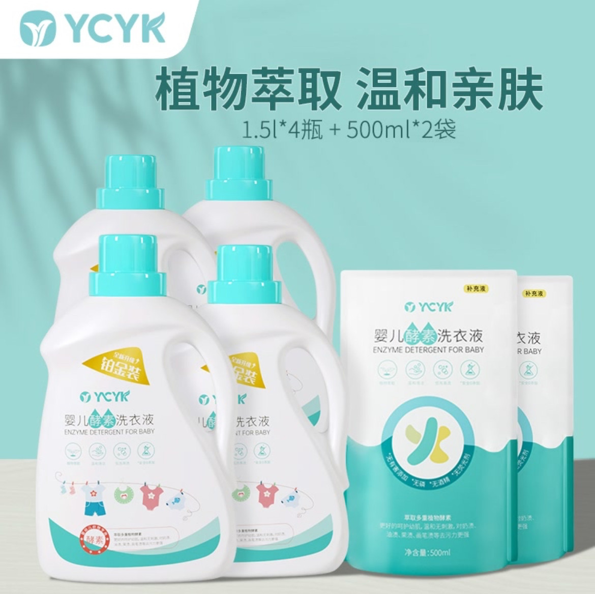YCYK婴儿洗衣液宝宝专用婴幼儿婴童新生儿童酵素组合装4瓶+2袋