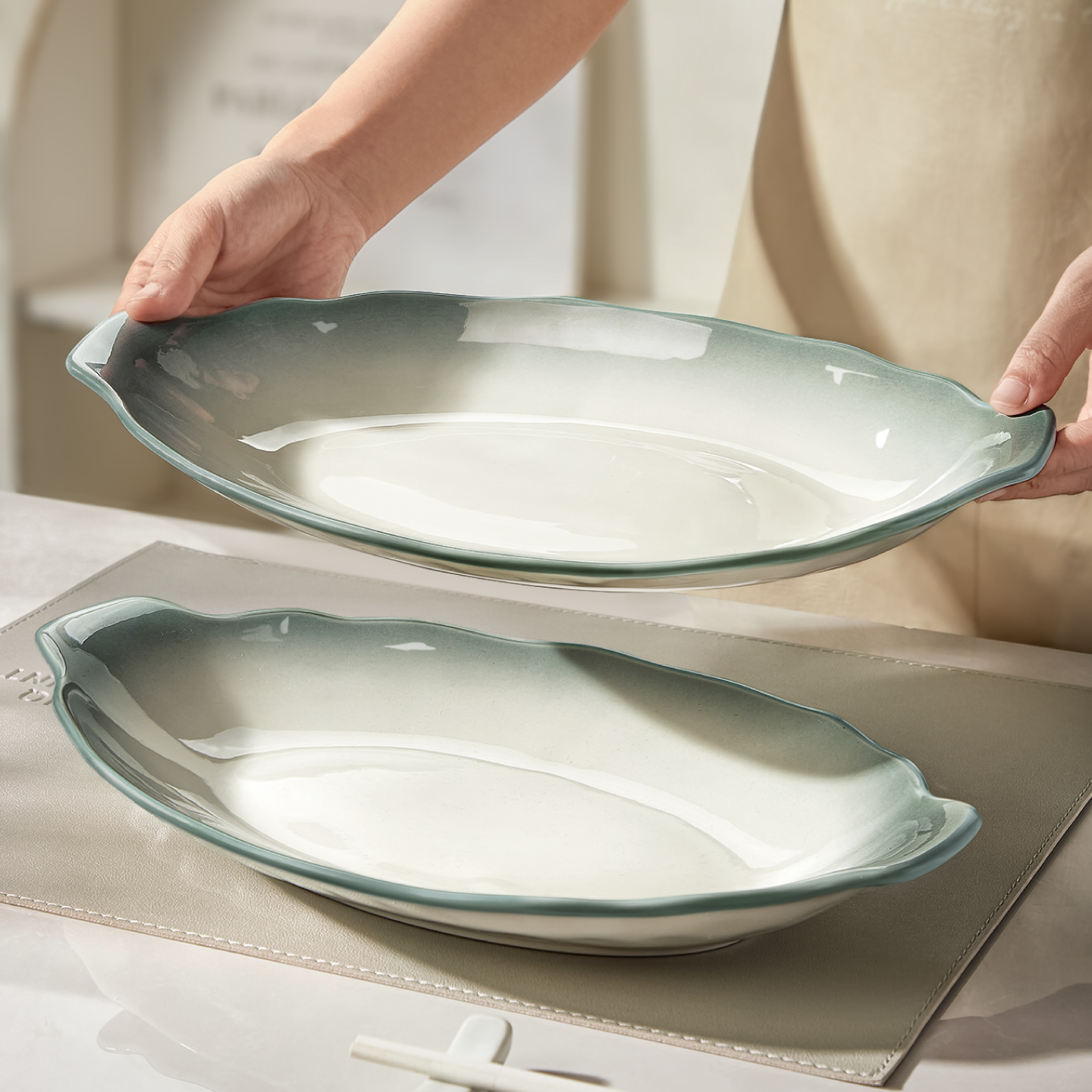 双耳陶瓷鱼盘家用2025新款蒸鱼盘子高级感鱼盆餐具鱼碗大号装鱼碟