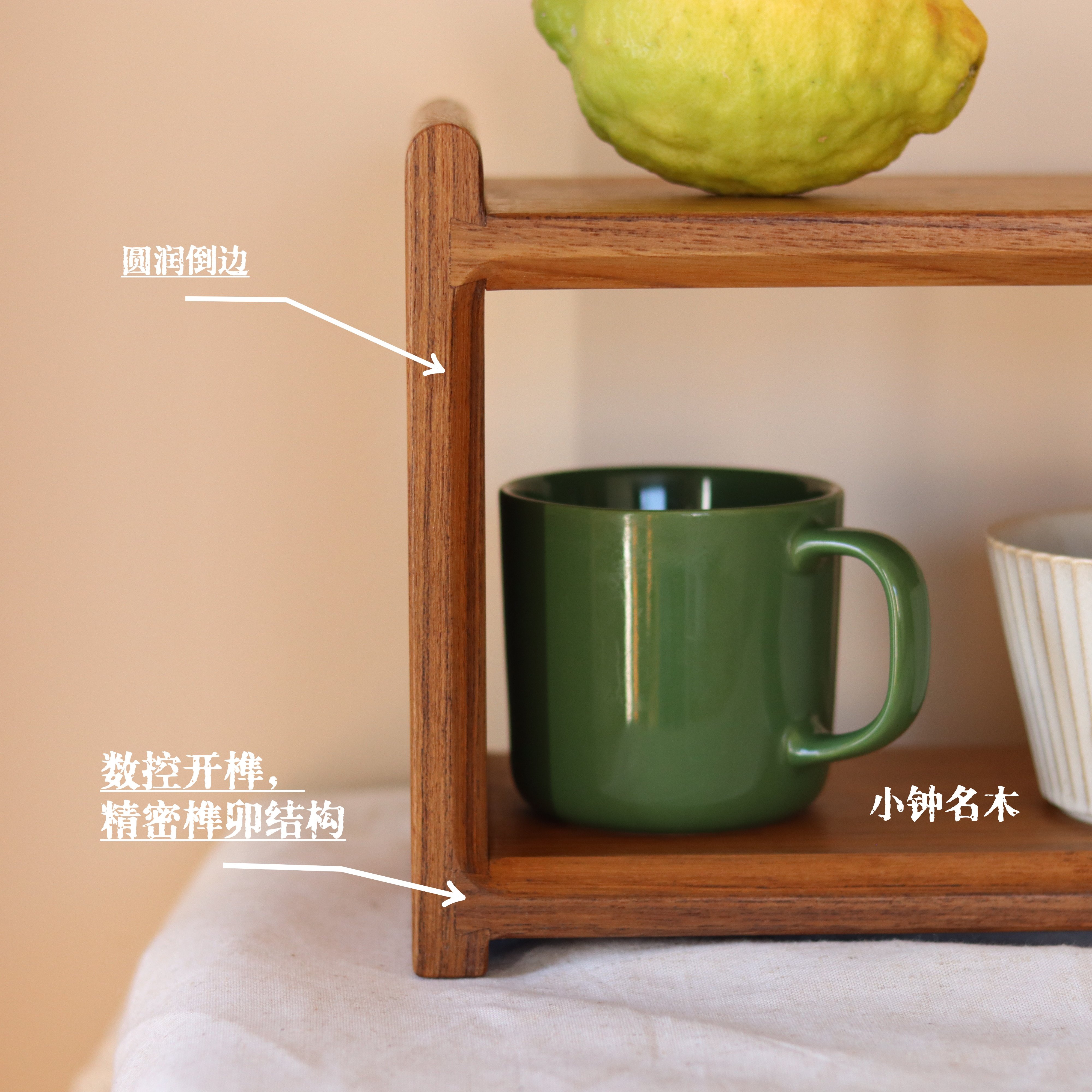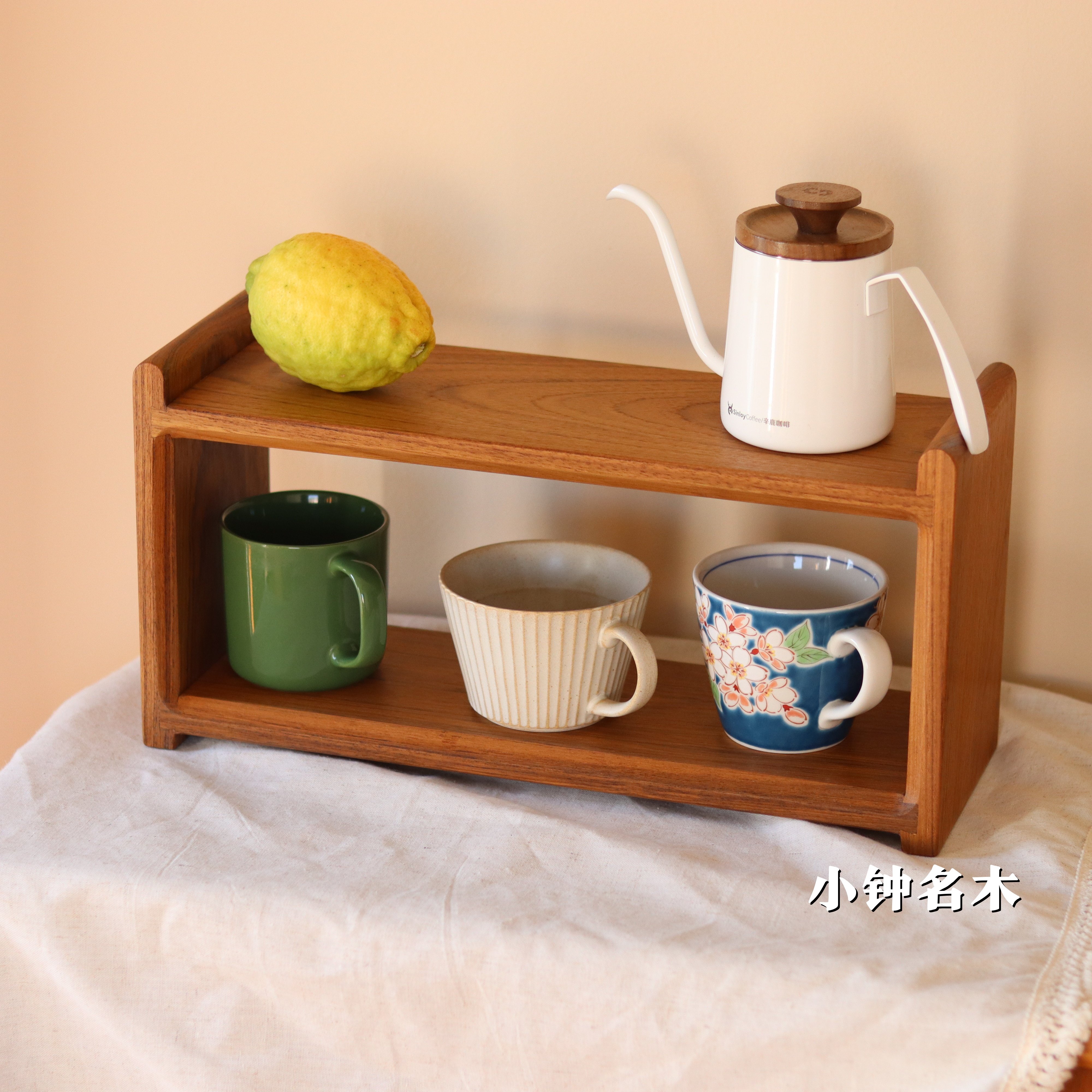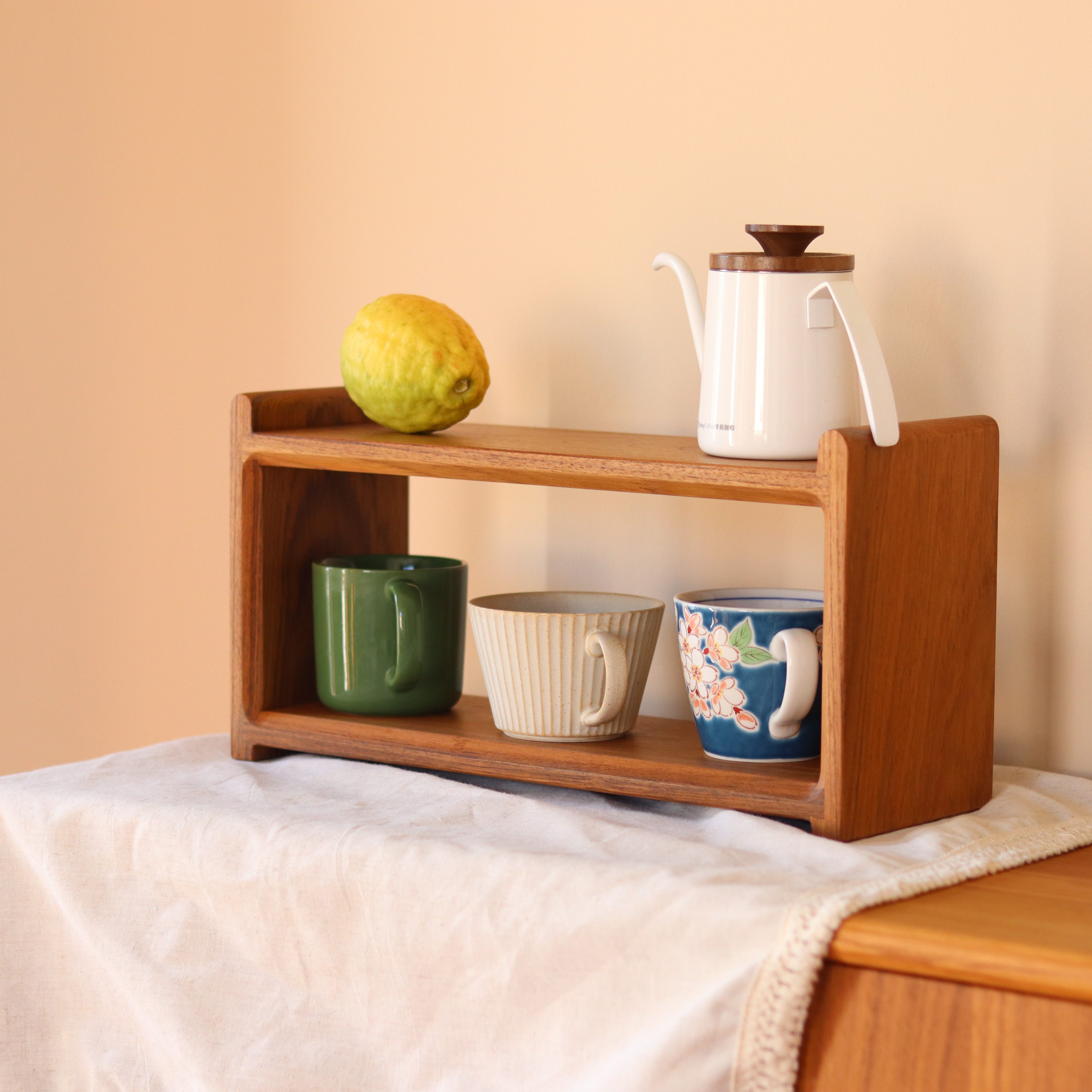 小钟 缅甸柚木杯架实木双层杯架台面桌面置物架咖啡杯子储物木质