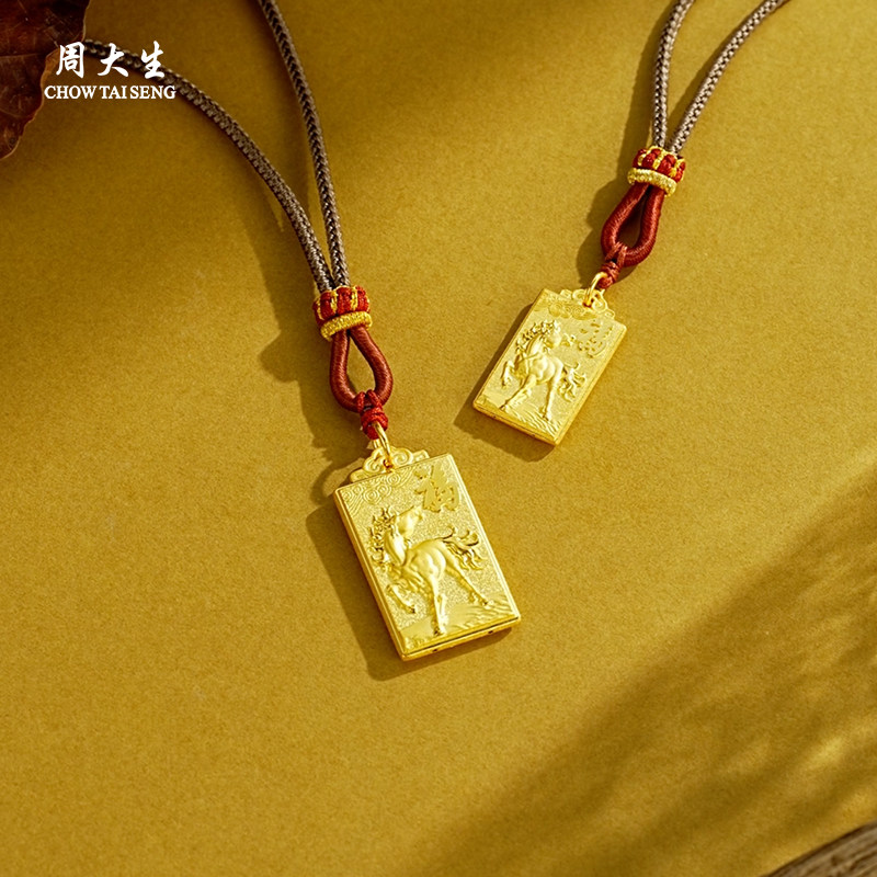周大生黄金吊坠足金马上有福项链挂坠马年生肖本命年礼物送男女友