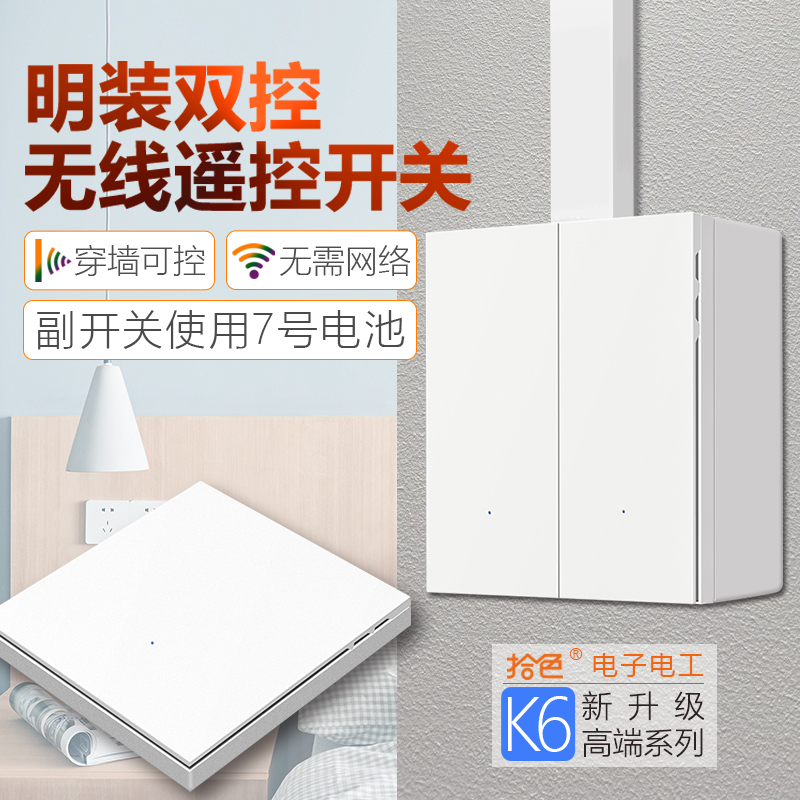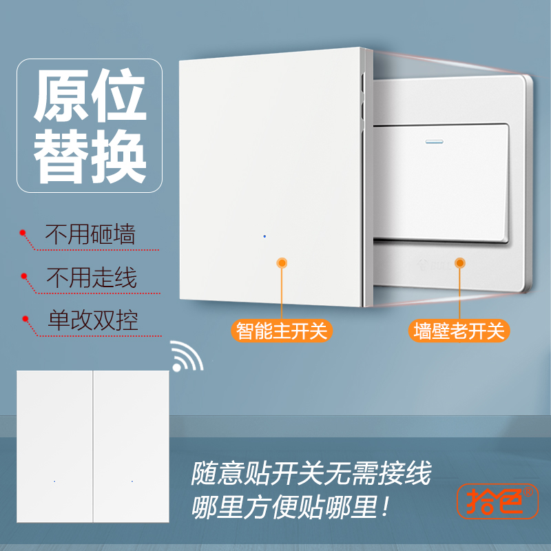 明装无线遥控开关面板免布线220v家用电灯双控智能随意贴远程控制