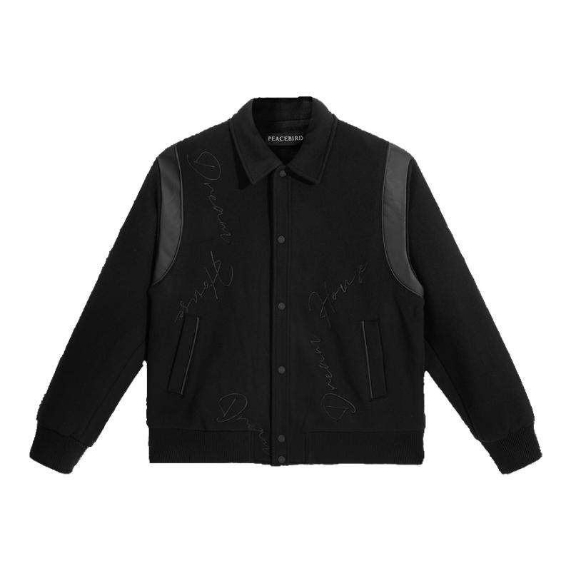 太平鸟男装 Daria ong联名合作系列黑色翻领夹克外套男