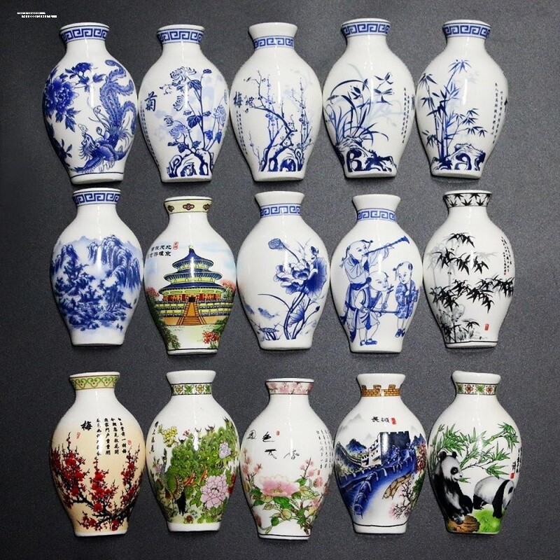 景德镇陶瓷冰箱贴中国古风青花瓷家居装饰品陶瓷磁性贴商务纪念品