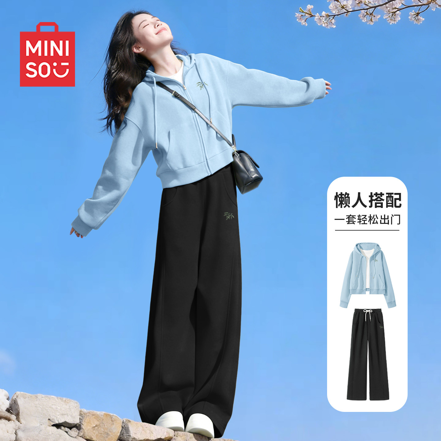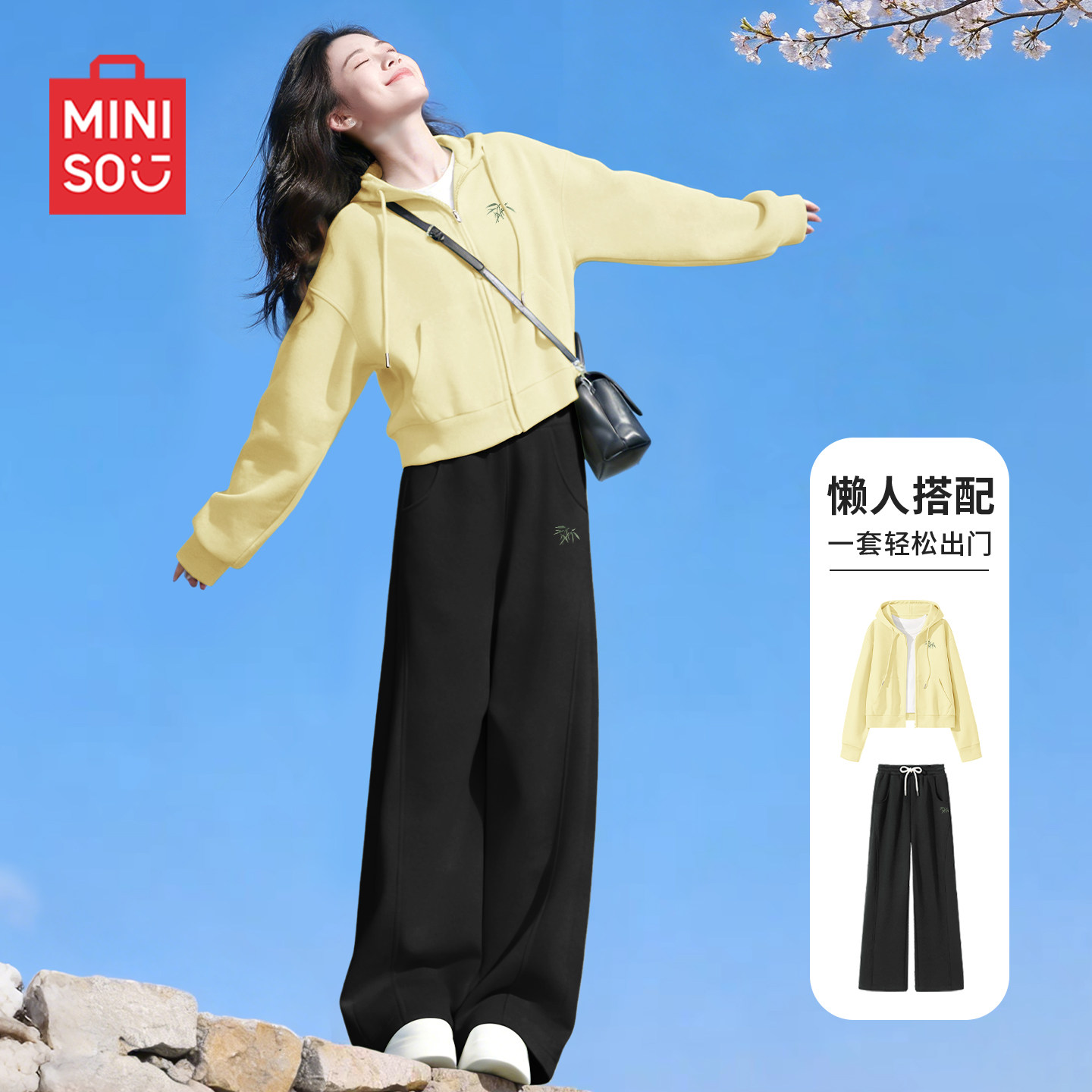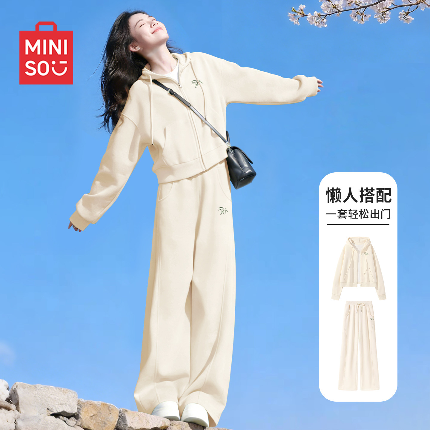 名创优品休闲运动套装女小个子卫衣卫裤春装2026超火穿搭一整套D