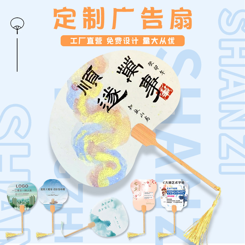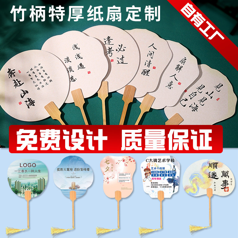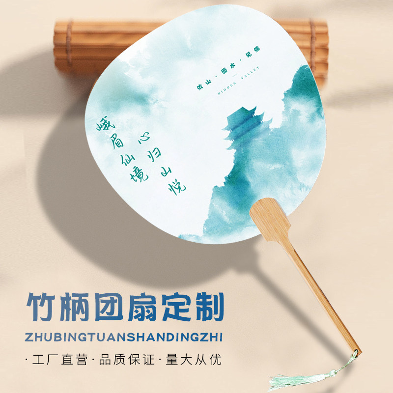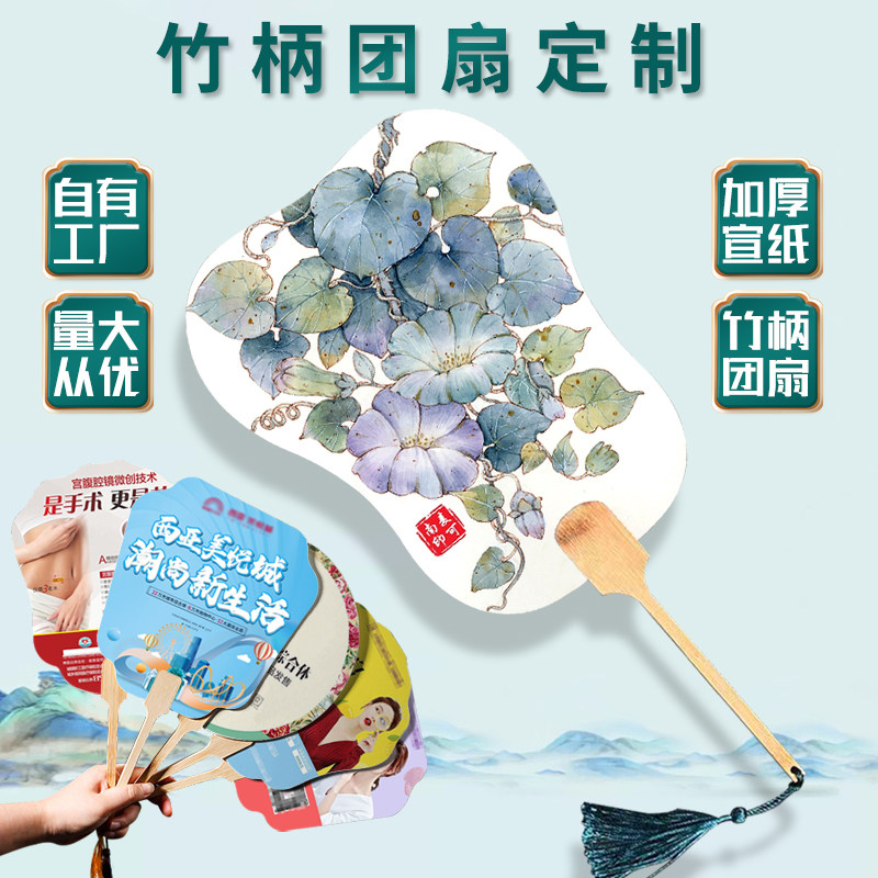 广告扇定制原木竹柄国风宣纸团扇中式流苏国潮扇子diy书法扇定做