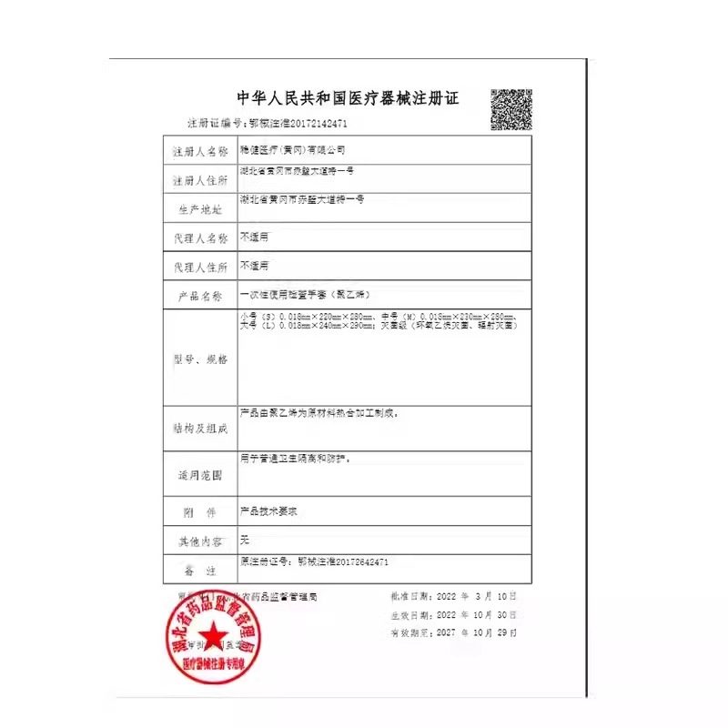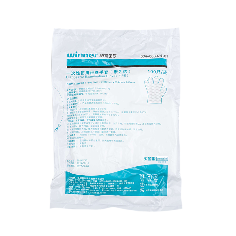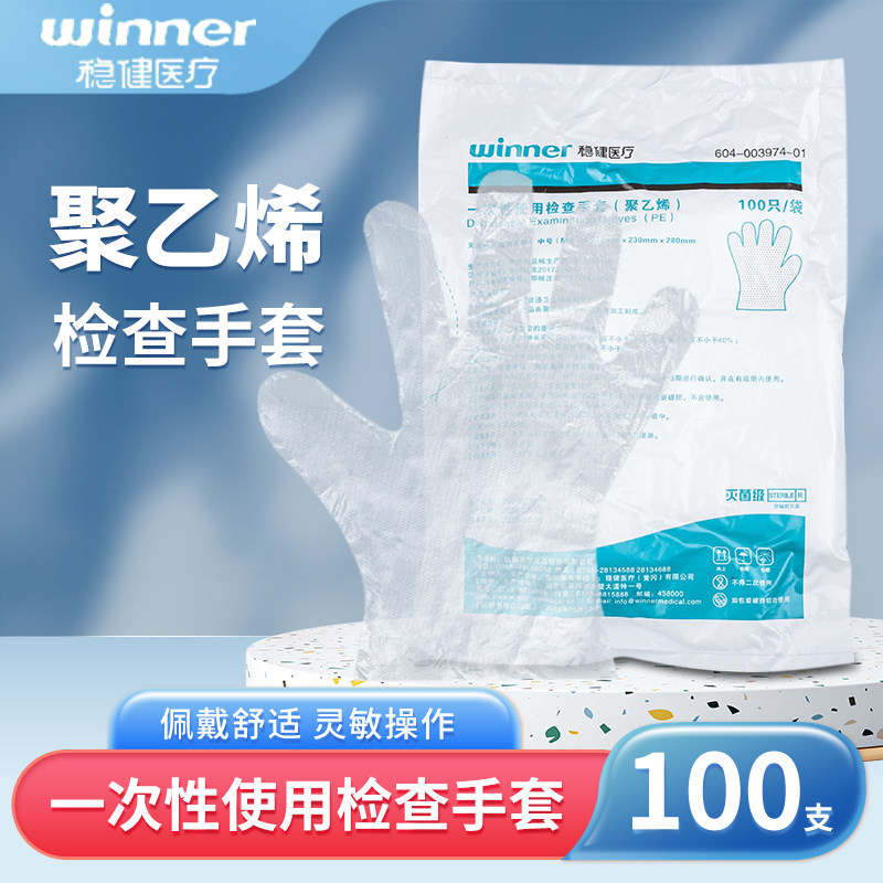 稳健医用PE手套一次性塑料检查手套 透明薄膜家用医生灭菌牙科