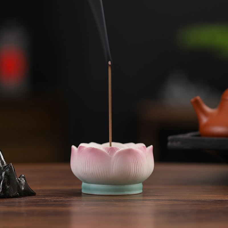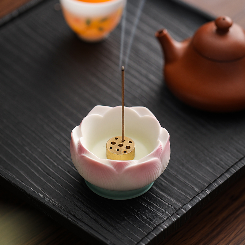 陶瓷香熏炉家用室内创意莲花线香炉底座茶道室内线香插炉子香座
