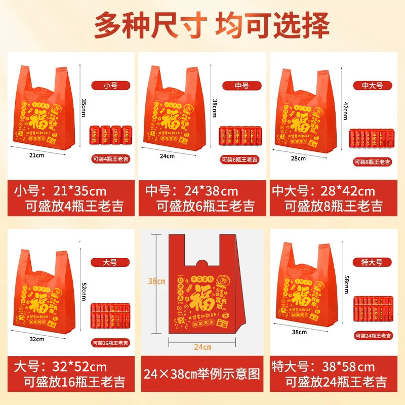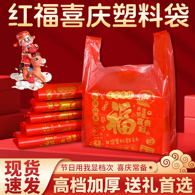 红色塑料袋新年礼品包装袋加厚大号超市购物手提打包袋方便袋批发