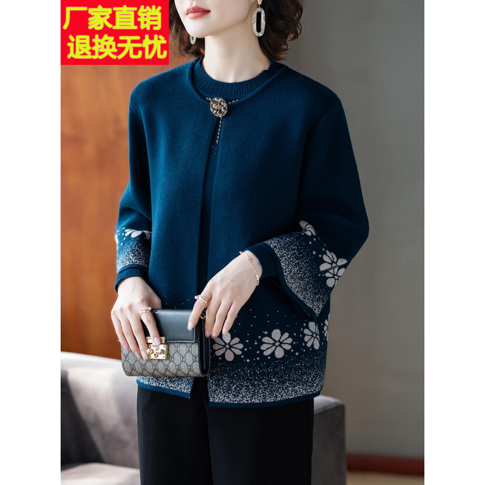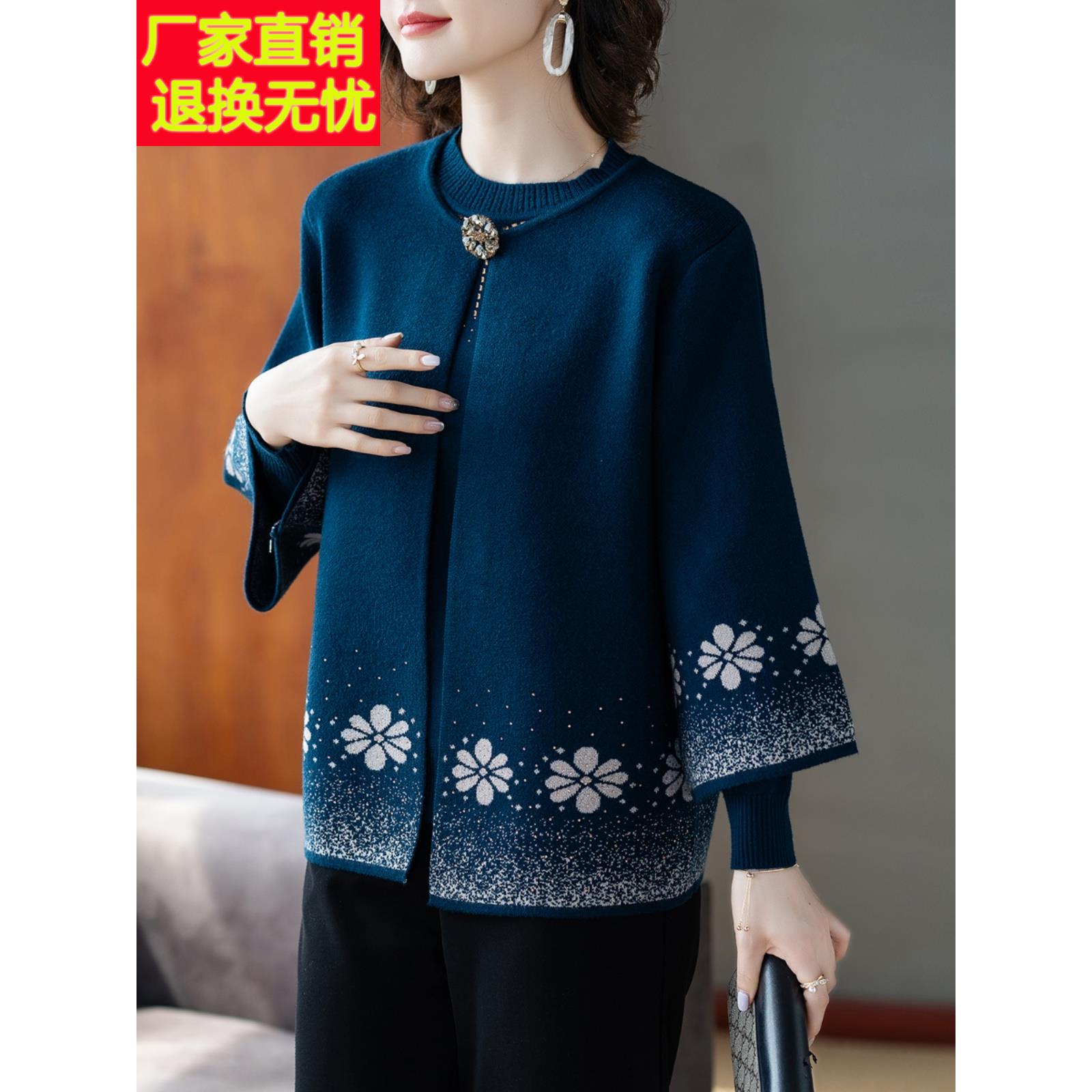 妈妈秋装套装洋气2025新款中老年人春秋上衣服女士毛衣外套50多岁