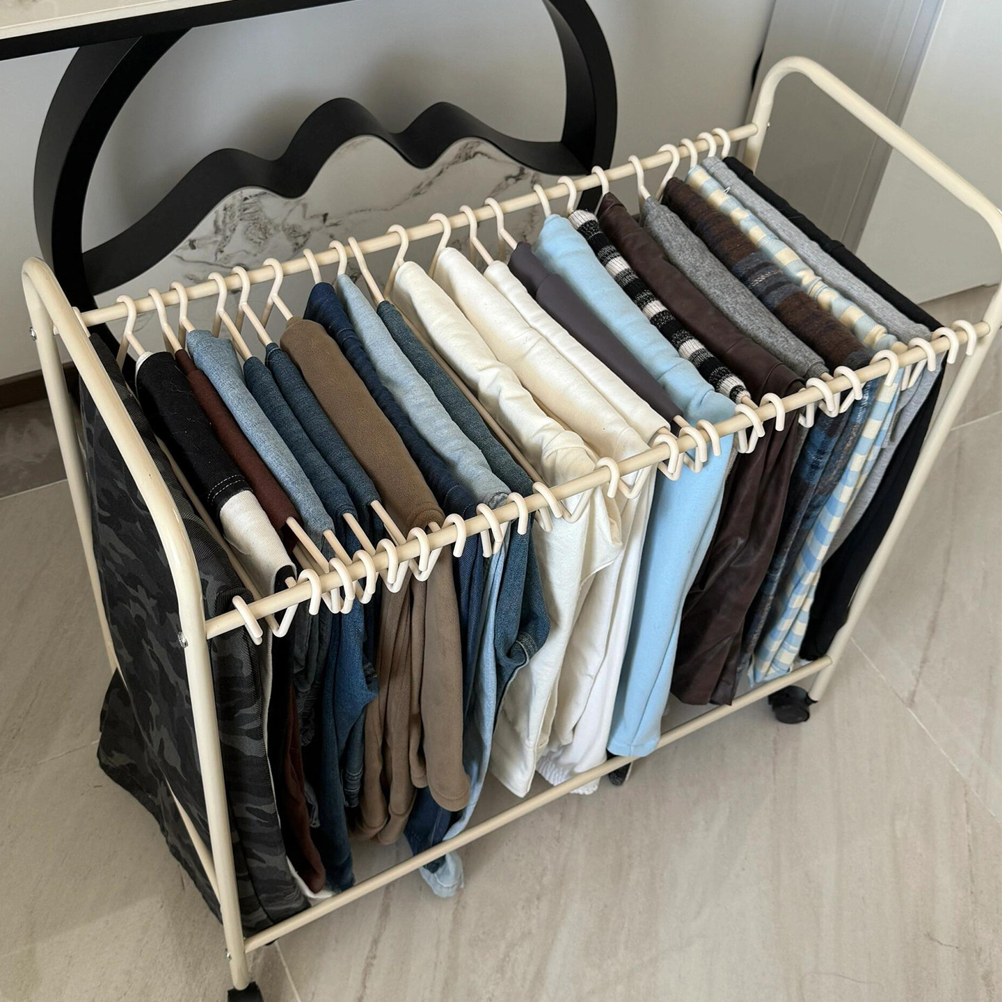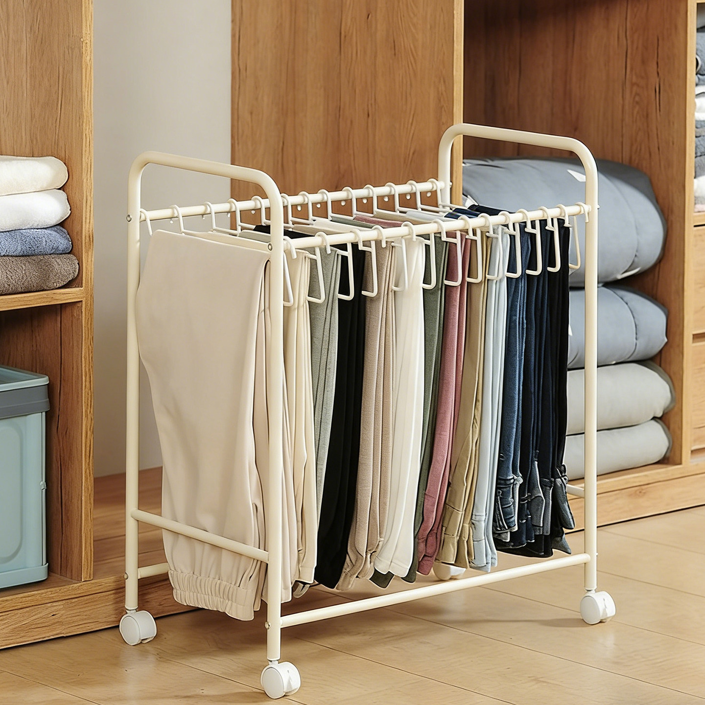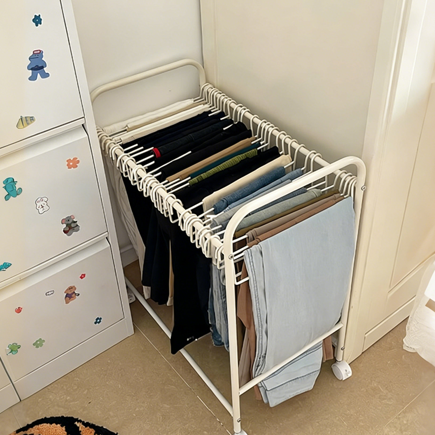 家用卧室裤架裤子收纳整理神器多功能落地滚轮可移动金属挂晾衣架