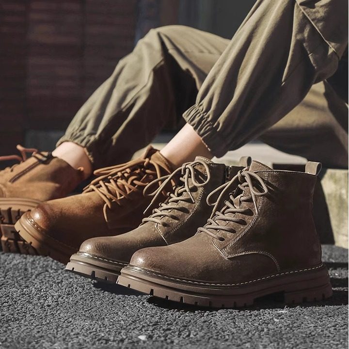 马丁靴男2025秋冬中帮英伦风休闲高帮男鞋百搭厚底加绒沙漠工装靴