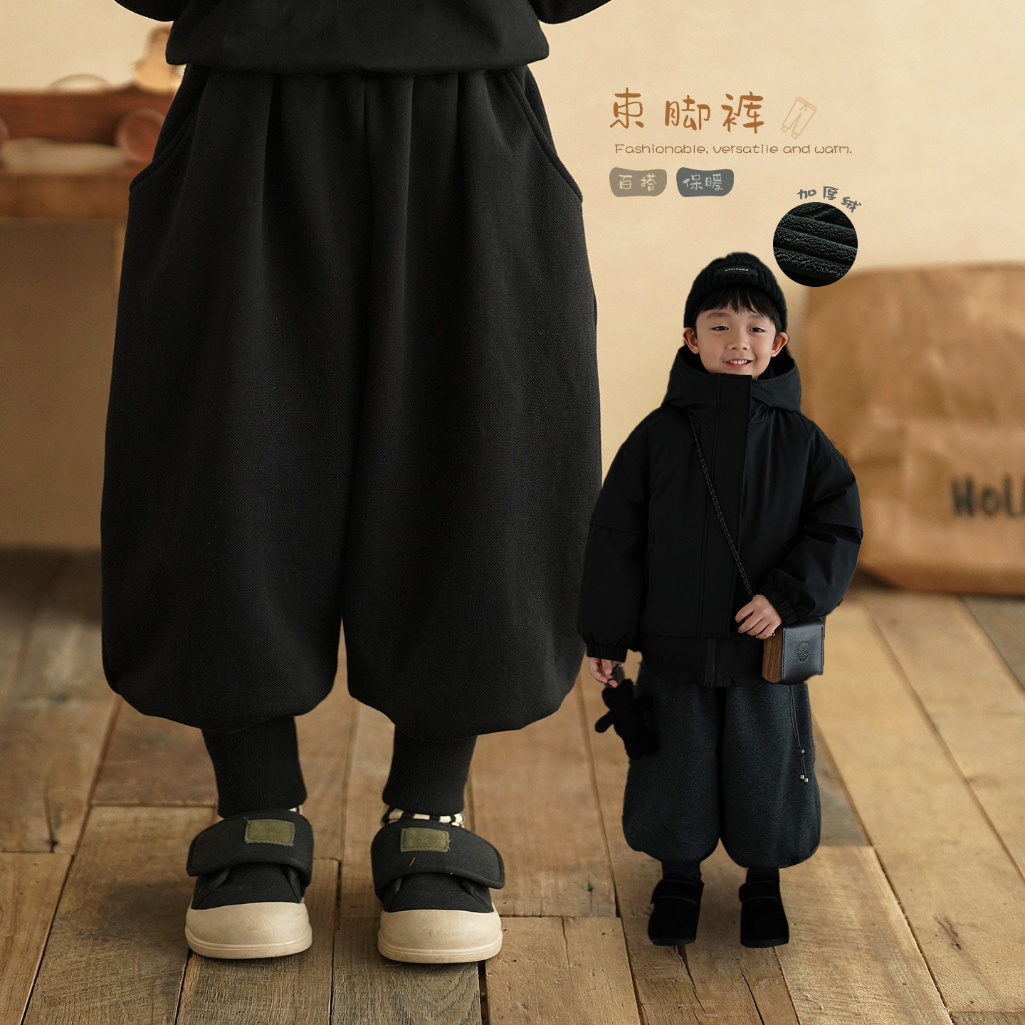 砚台家童装男童黑色卫裤冬装男孩灯笼裤宝宝厚裤子儿童春装运动裤