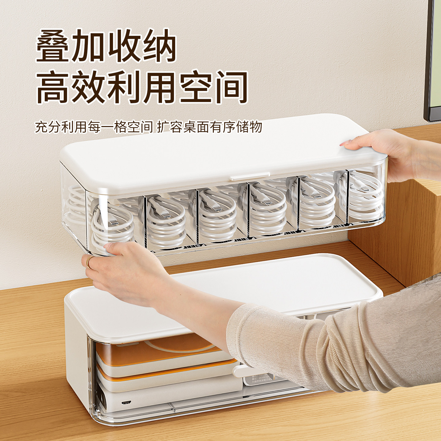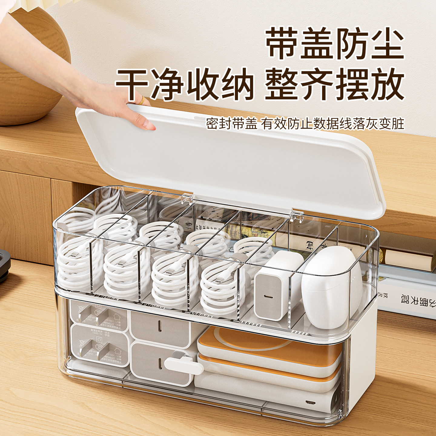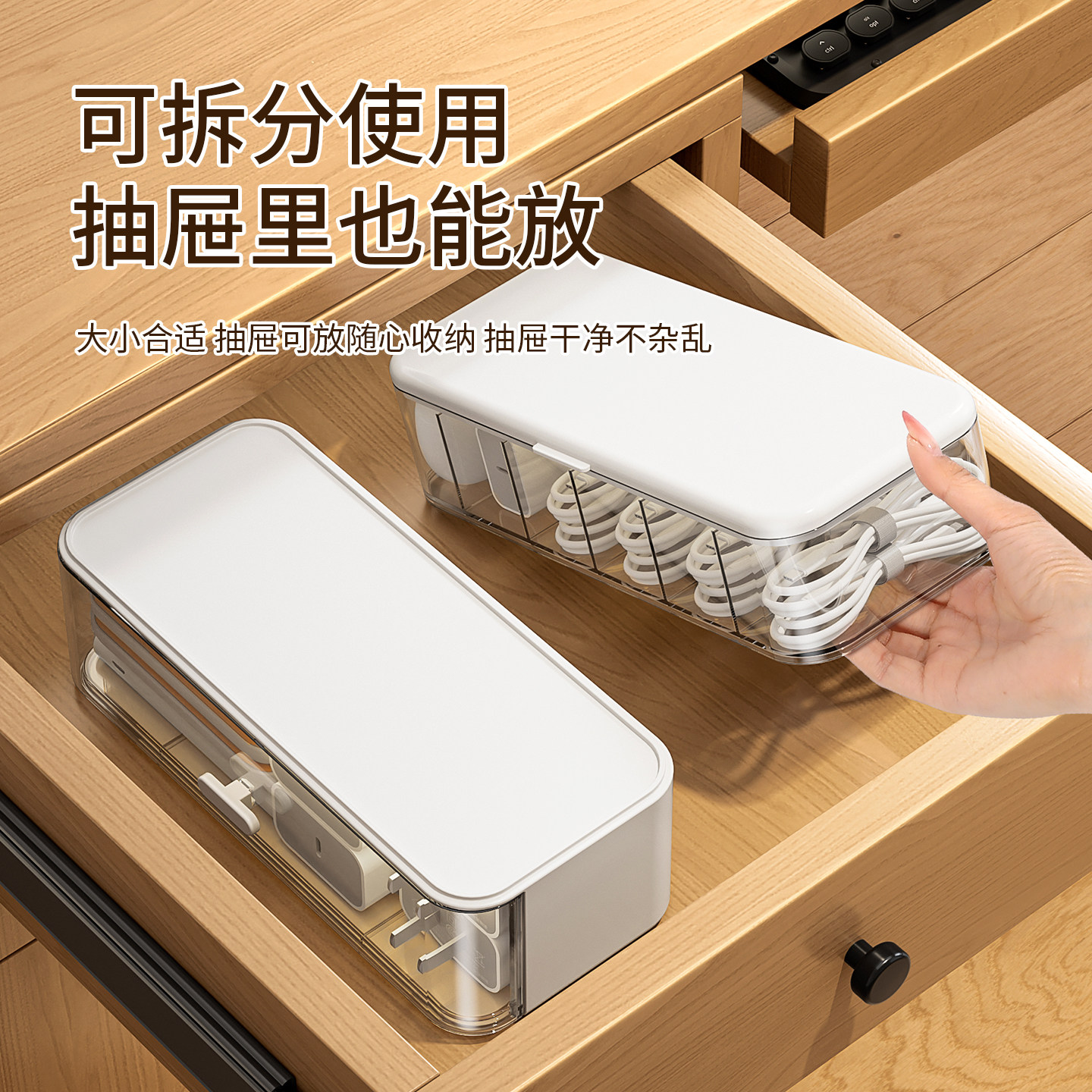 数据线收纳盒大容量充电线插头分区收纳整理神器桌面理线盒集线盒