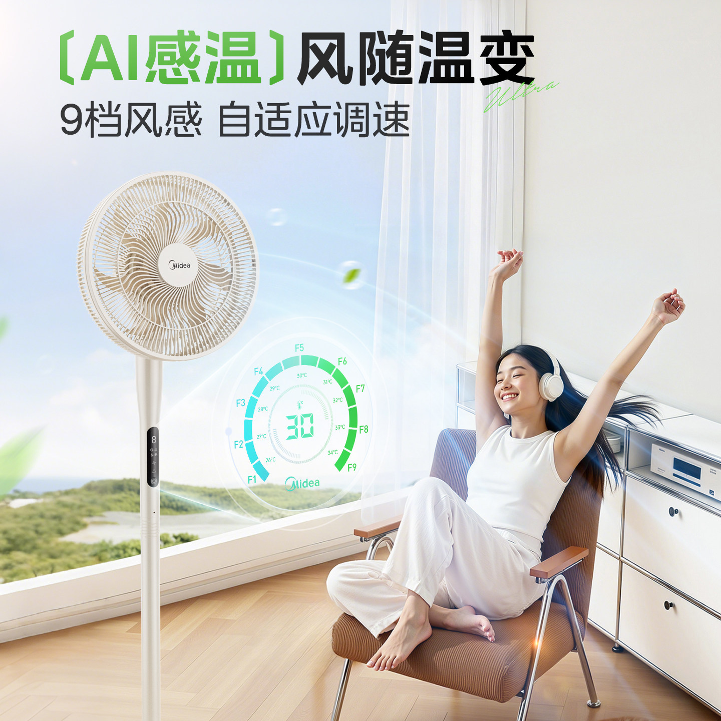 美的电风扇落地扇静轻音家用卧室遥控台立式大风力直流26新款电扇
