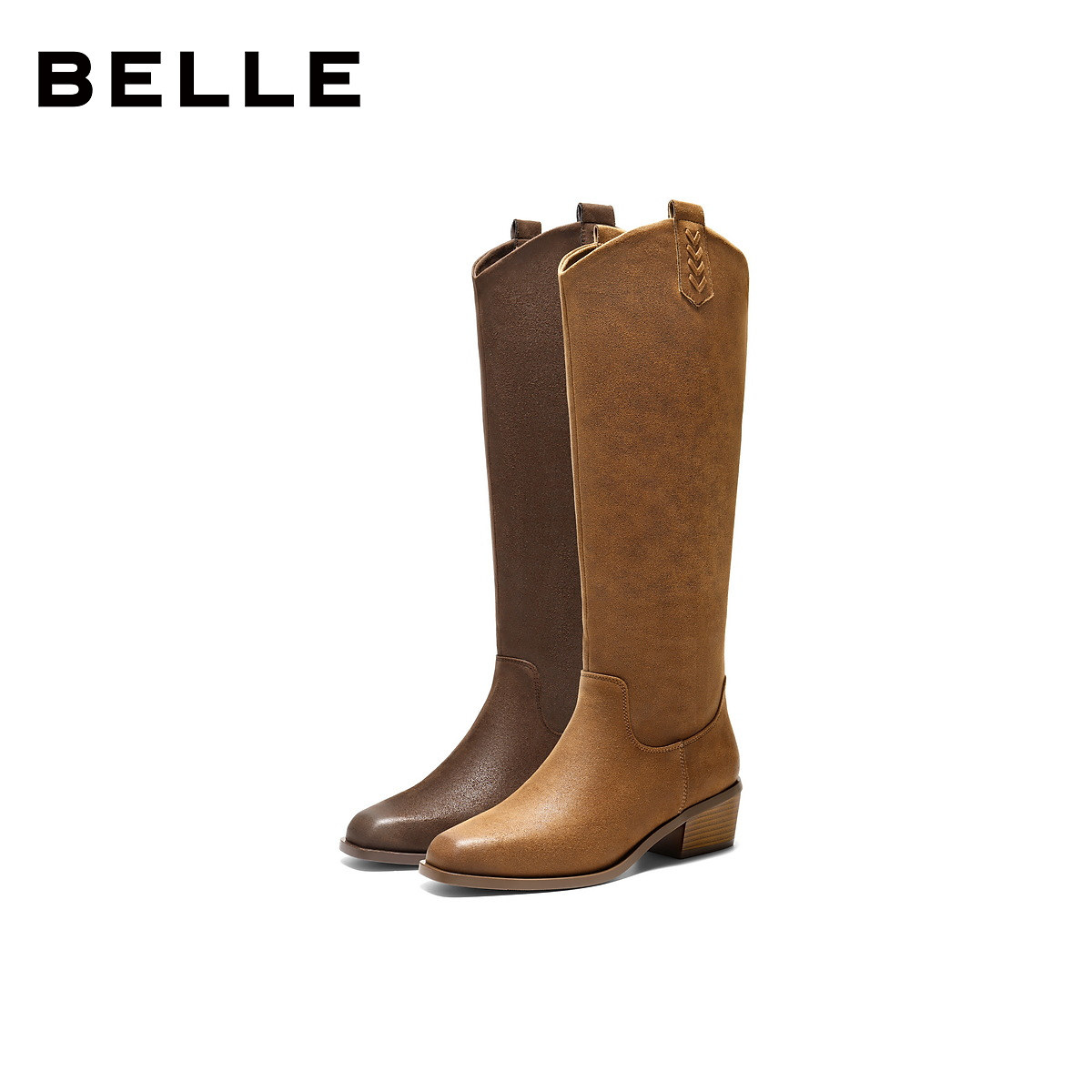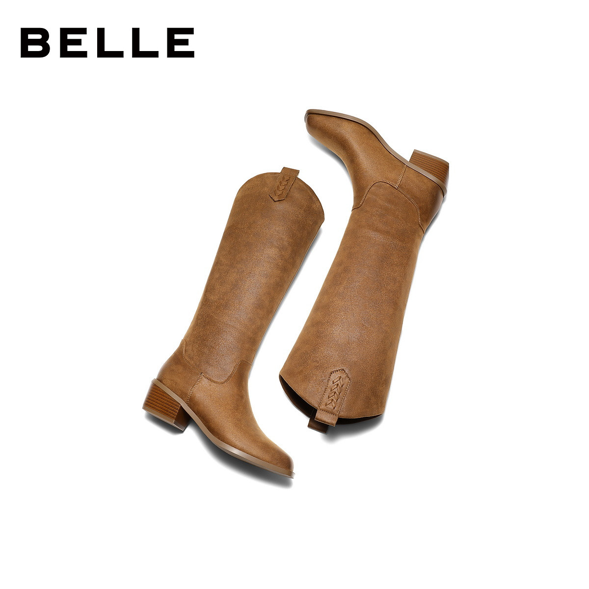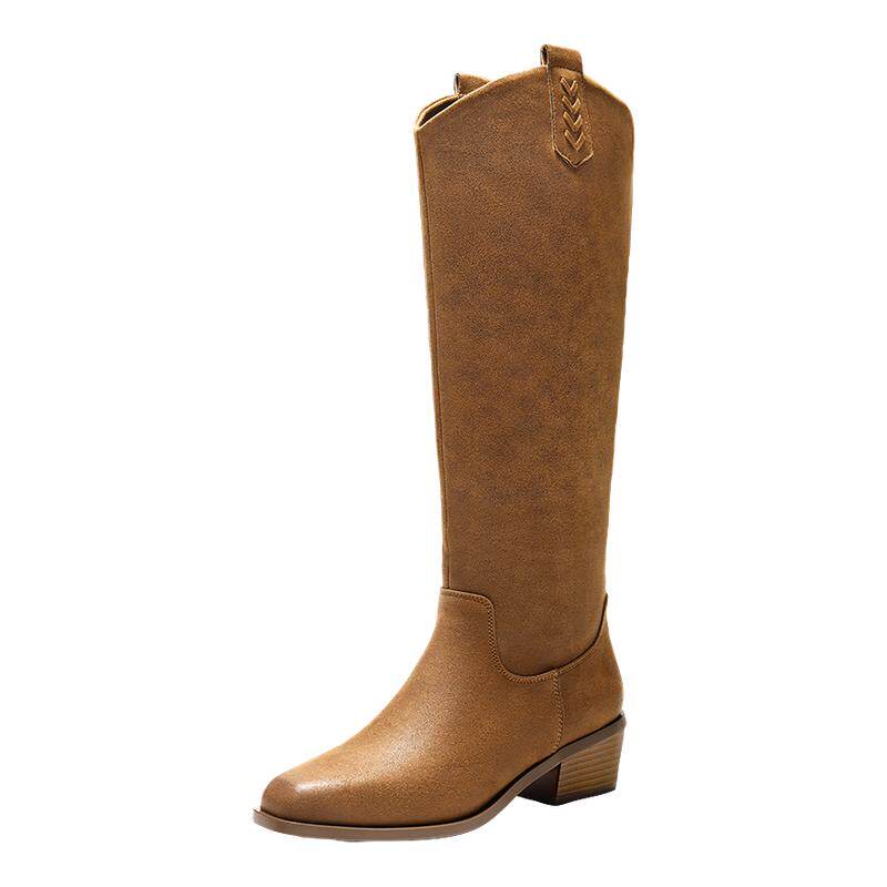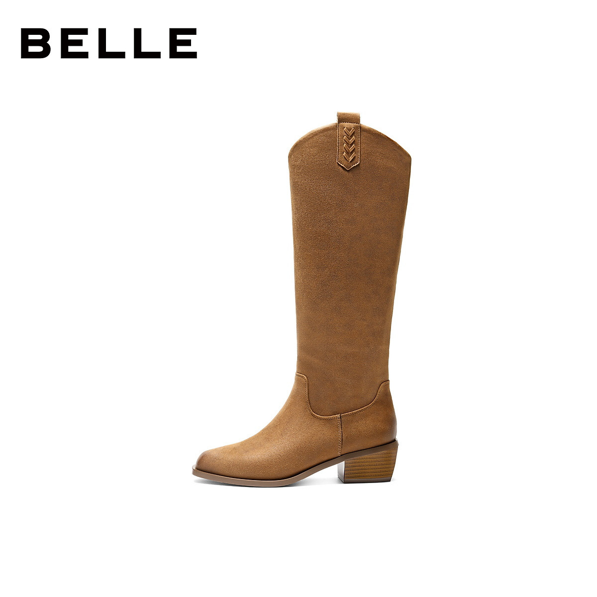 百丽女鞋显瘦时装高长筒靴女冬季新款粗跟显瘦西部靴子E8F1DDC5