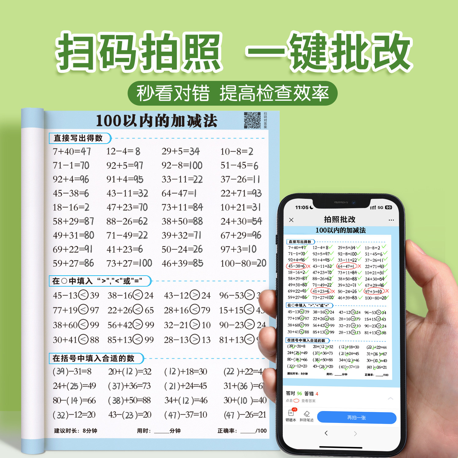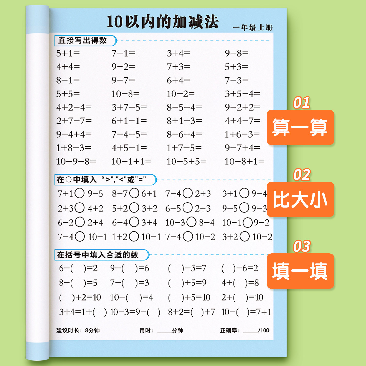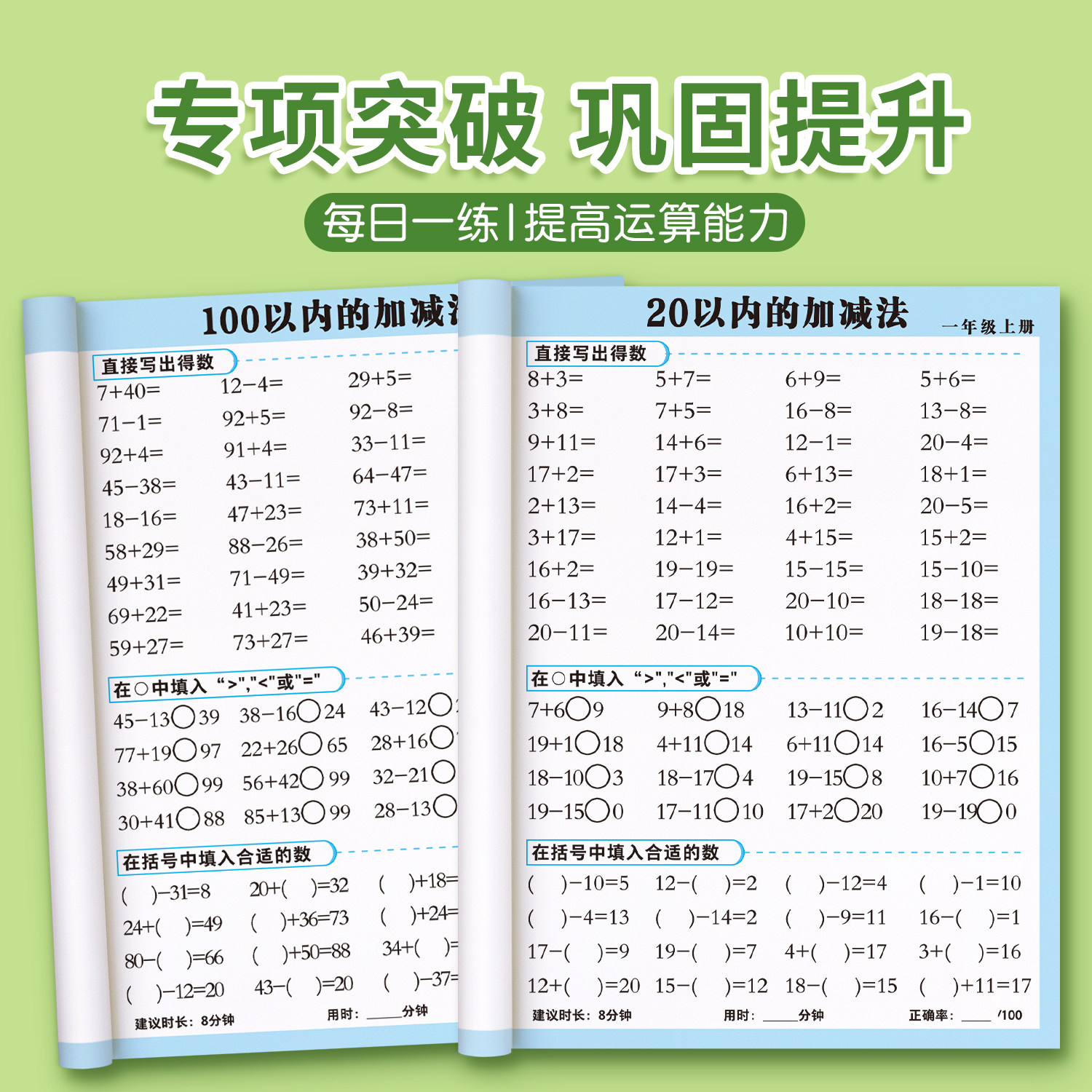 一年级口算天天练上册下册数学练习题人教版二年级上口算题卡每天一练20 100以内加减法专项练习本册计算数同步练习册速算思维训练