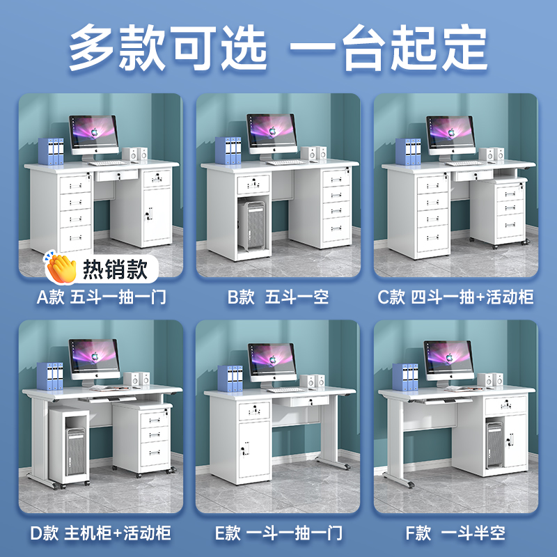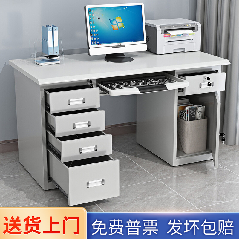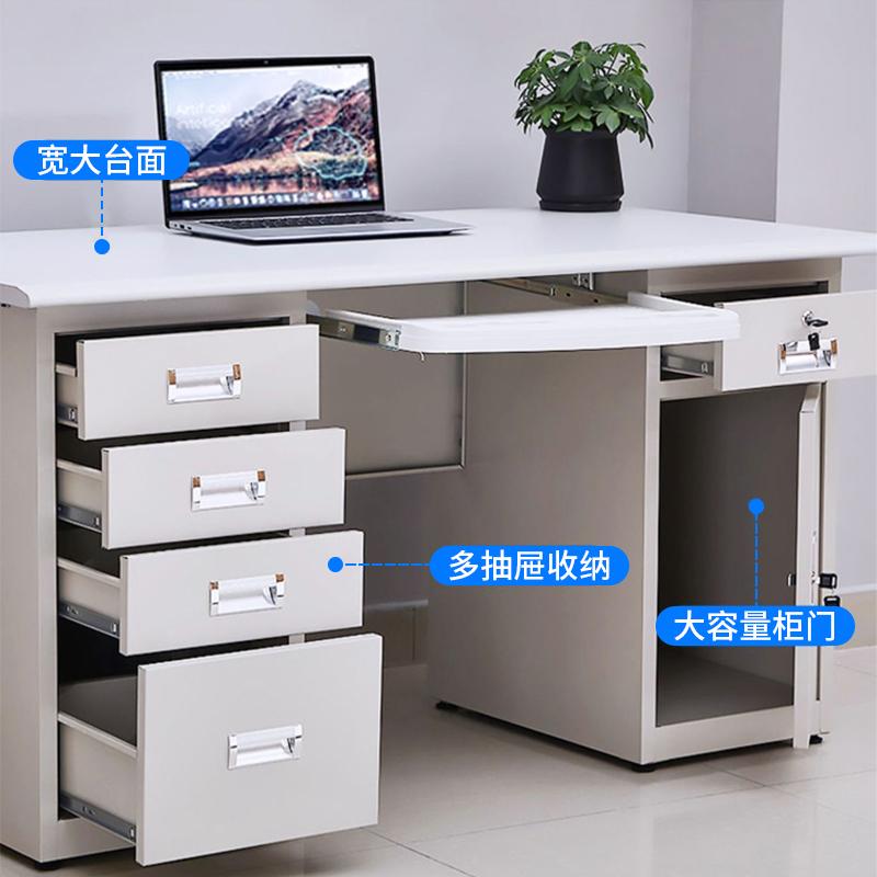 钢制铁皮办公室电脑桌单人带锁带抽屉桌医生财务职员不锈钢工作台