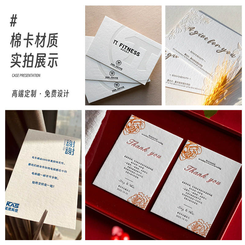 棉卡定制logo明信片感谢卡片浮雕凹烫金活版印刷邀请函订美容院护肤管理烫金商务名片设计售后服务卡服装吊牌