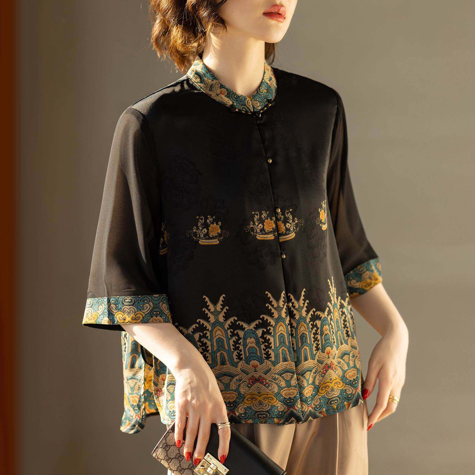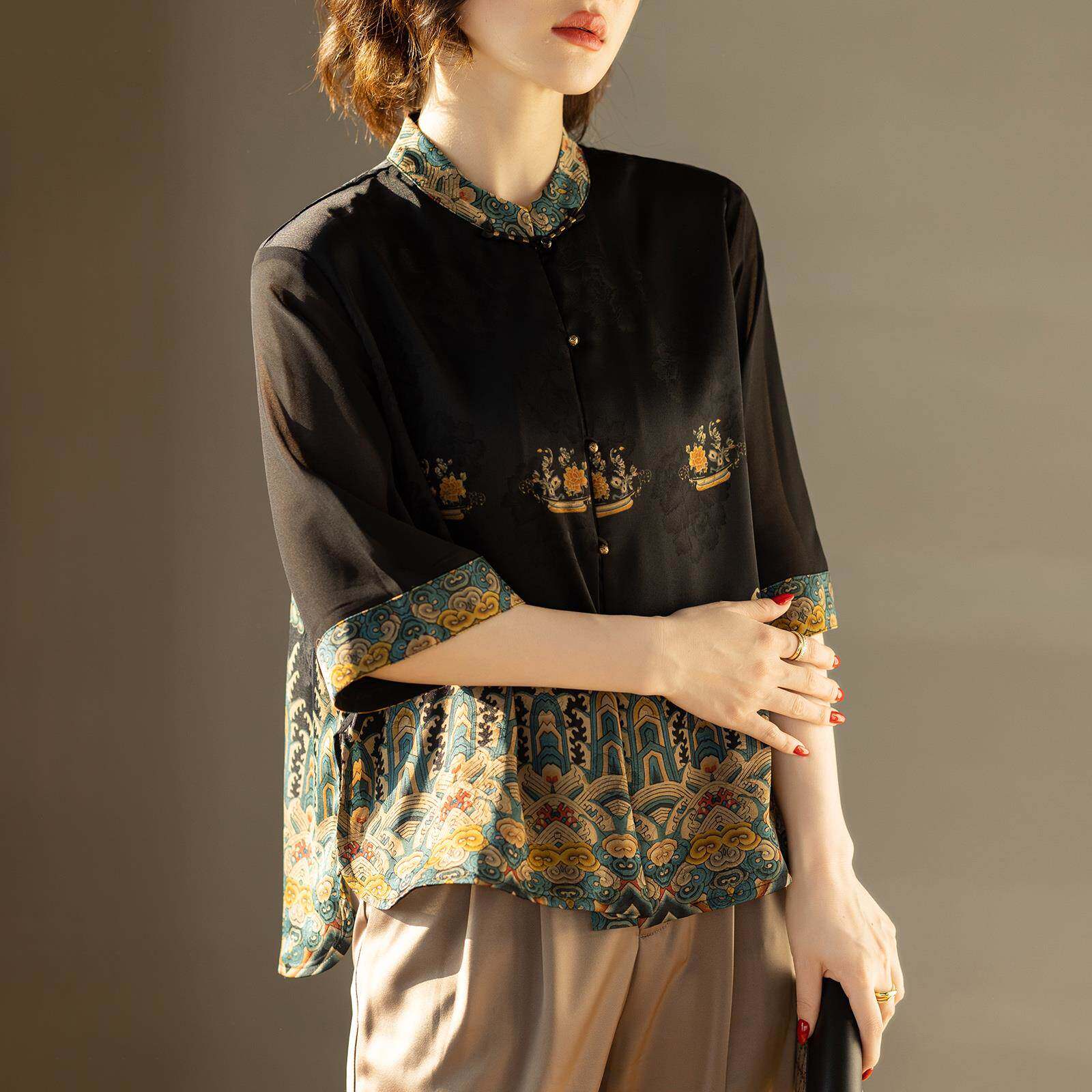 妈妈衬衫夏装套装2025新款中袖女士上衣服洋气时尚衬衣中老年小衫